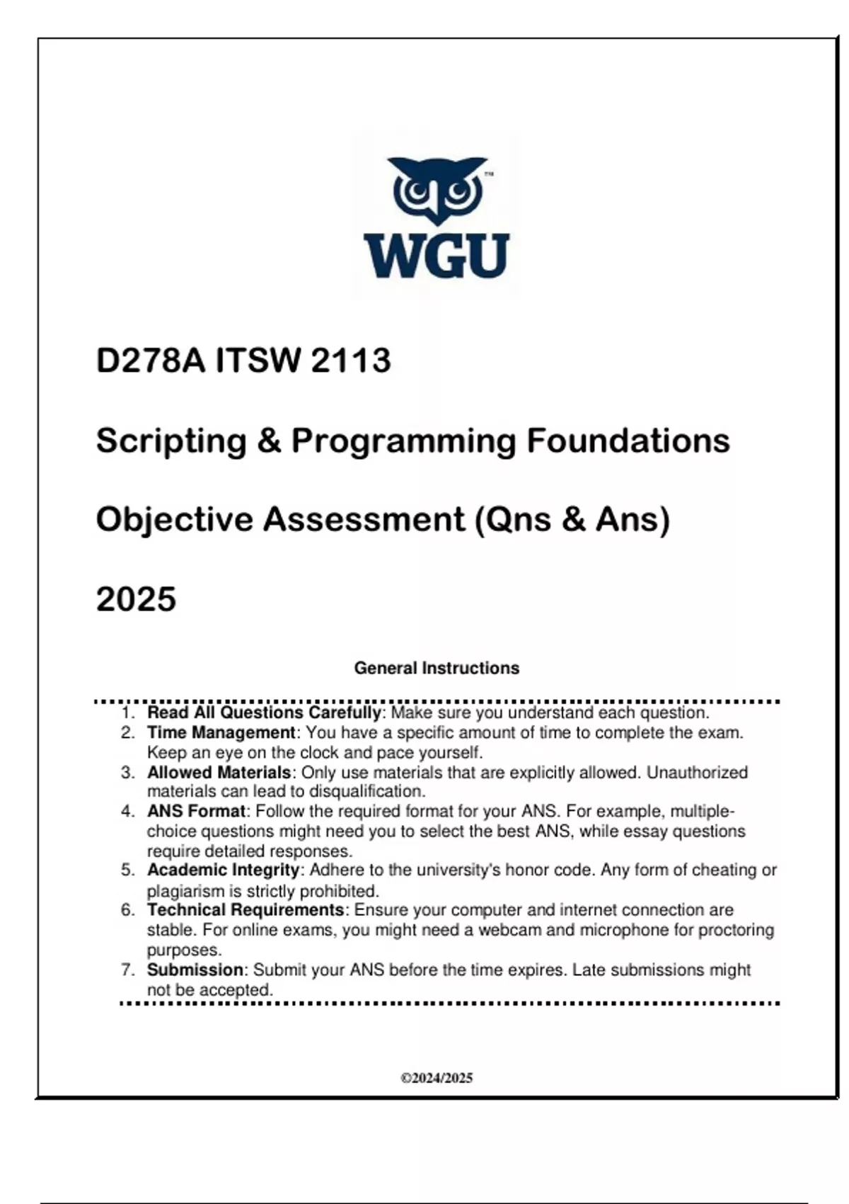 D278A ITSW 2113 Scripting & Programming Foundations OA (Qns & Ans) 2025D278A ITSW 2113 Scripting & Programming Foundations OA (Qns & Ans) 2025D278A ITSW 2113 Scripting & Programming Foundations OA (Qns & Ans) 2025