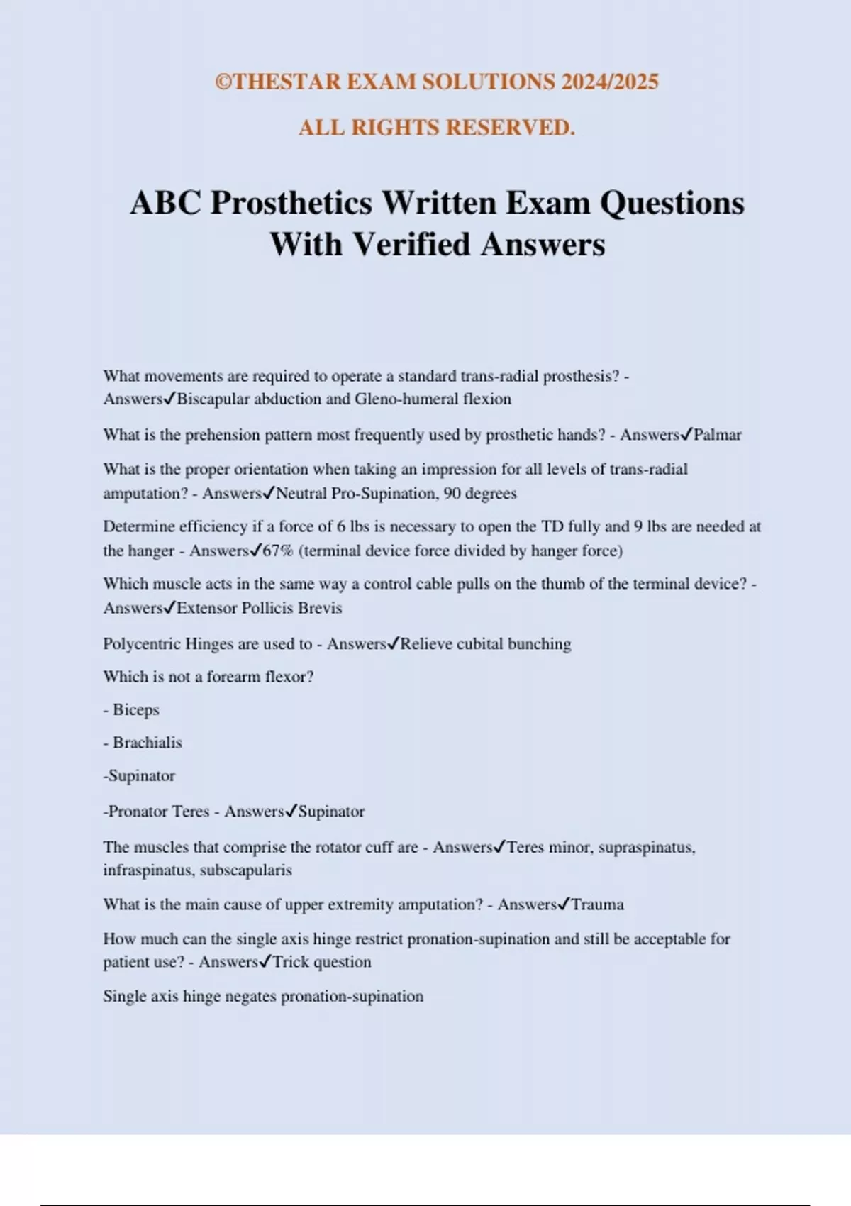 ABC Prosthetics Written Exam Questions
