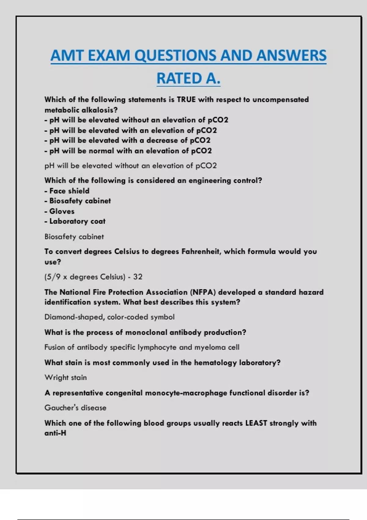 AMT EXAM QUESTIONS AND ANSWERS RATED A.