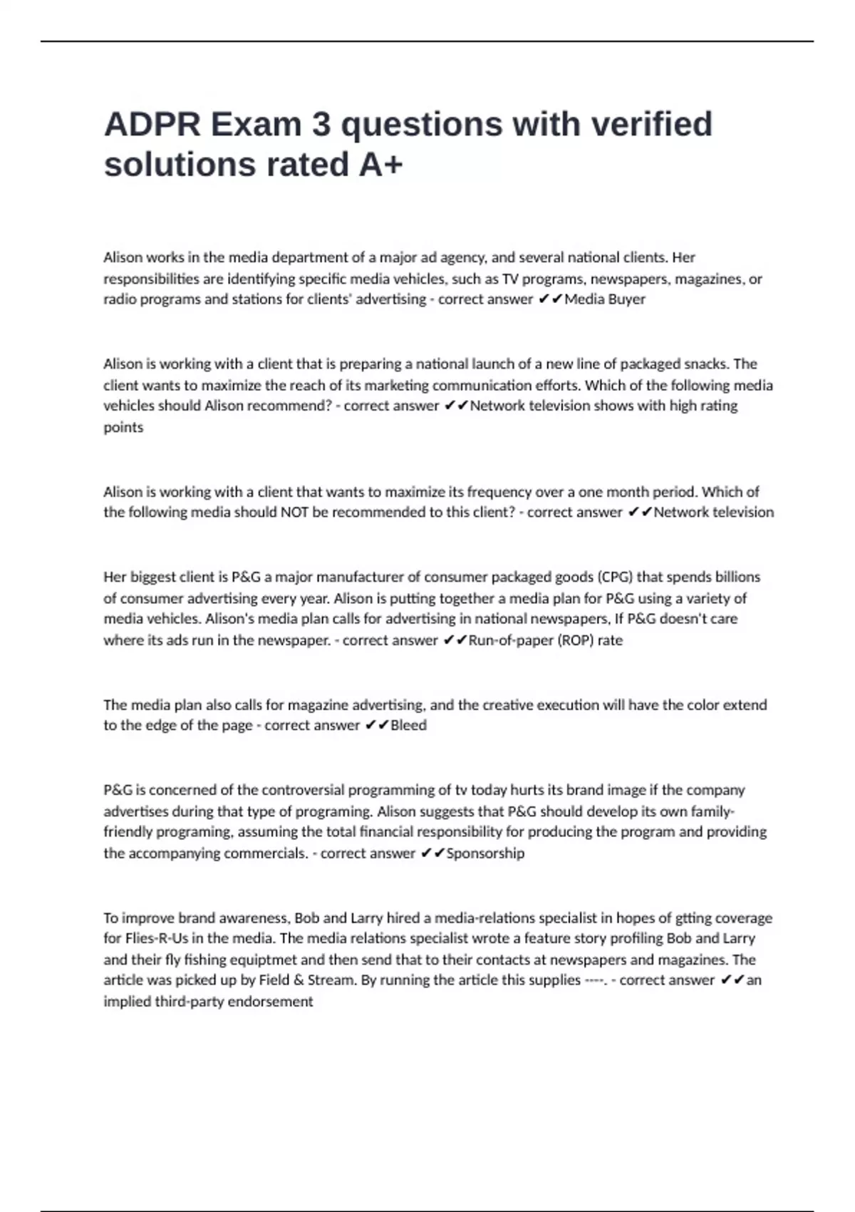 vehicles should Alison recommend? - correct answer ✔✔Network television shows with high rating