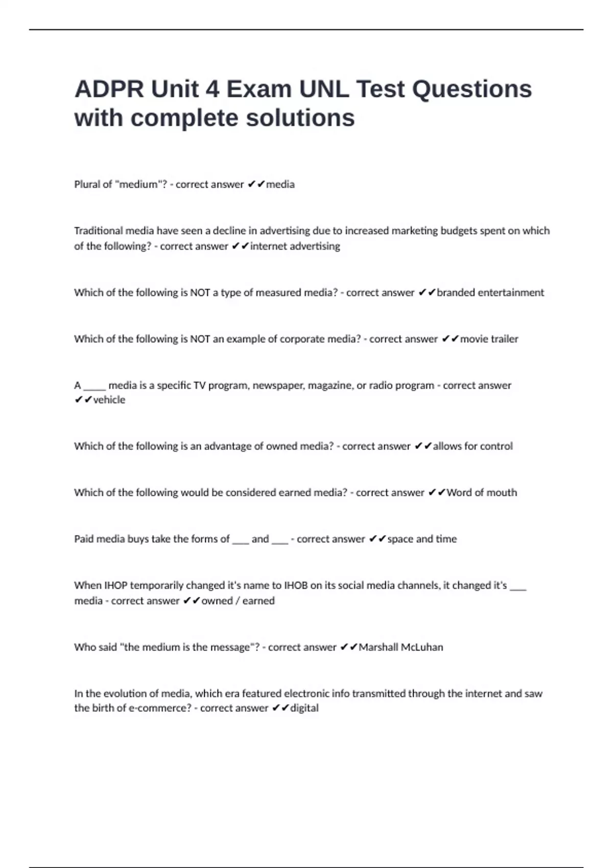 Welcome to Exam Hub Are you looking for high-quality, exam-ready notes, past papers, Test Banks, and well-researched study materials to boost your grades? You’re in the right place! I create and upload detailed, easy-to-understand, and well-structured documents across multiple subjects. All my materials are designed to help you study , save time, and excel in your coursework and exams! On this page NURSING EXAMS,STUDY GUIDES,TESTBANKS AND QUALITY EXAMS IS THE KEY TO STUDENTS CAREER EXCELLENCE, you find all documents, package deals, and flashcards offered by BravelRadon (EXAM HUB STORES!)....kindly recommend a friend for A+ GARANTEEd either you are a first-year student or final-year graduation! best of luck!