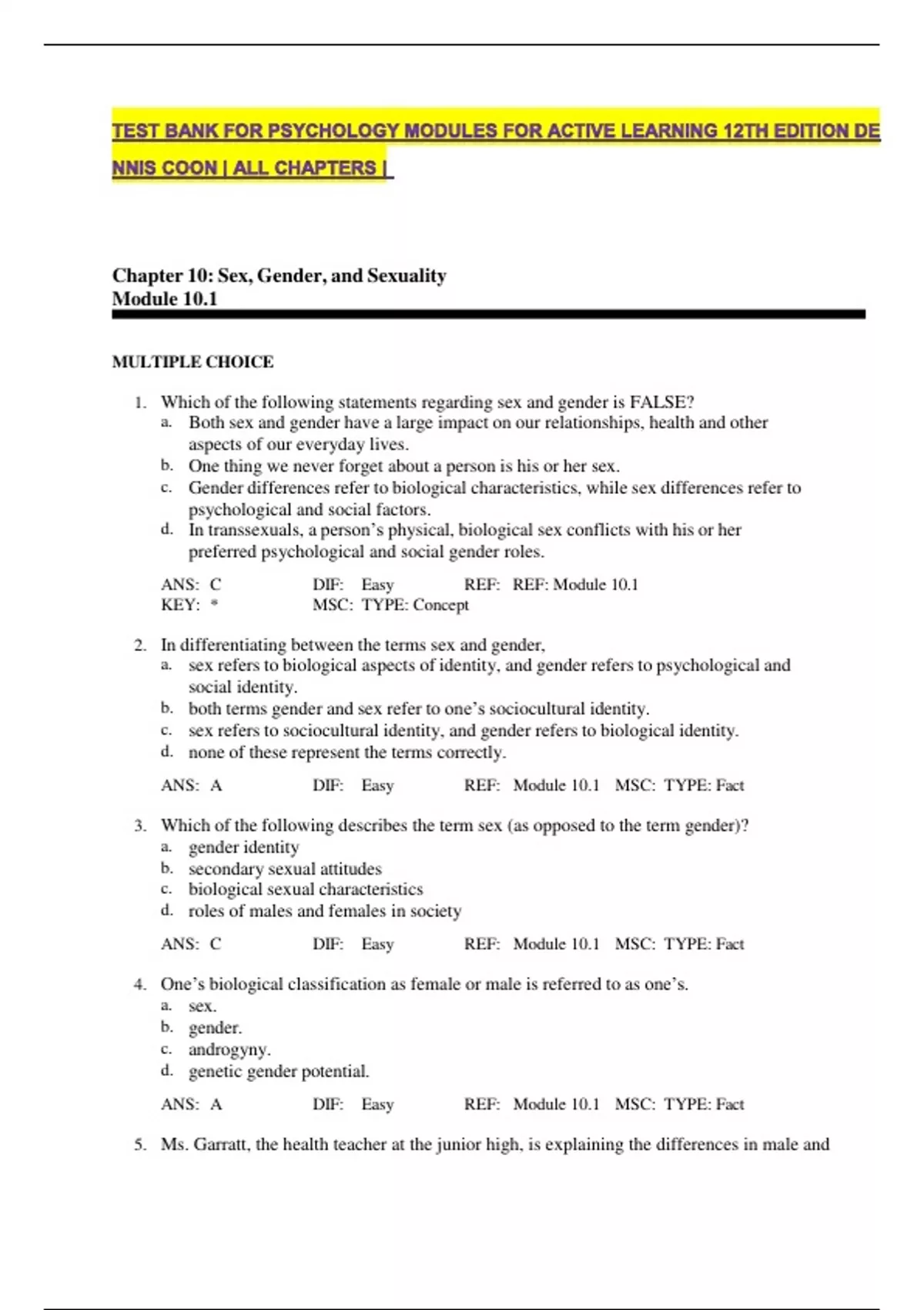 ANS: b n D DIF: Easy REF: b n bn Module bn10.1 bn b n MSC: b n TYPE: bnFact