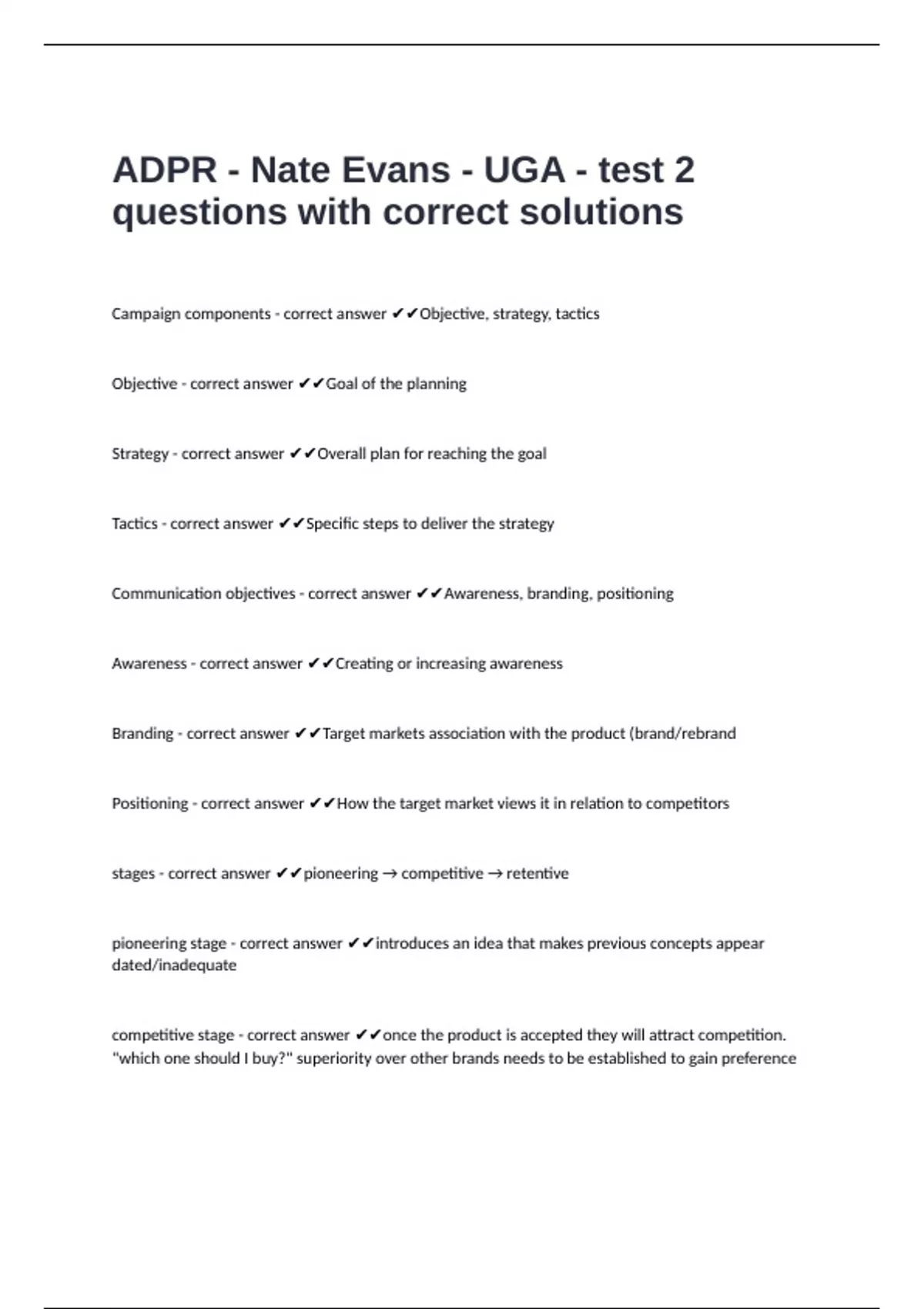 ADPR - Nate Evans - UGA - test 2 questions with correct solutions