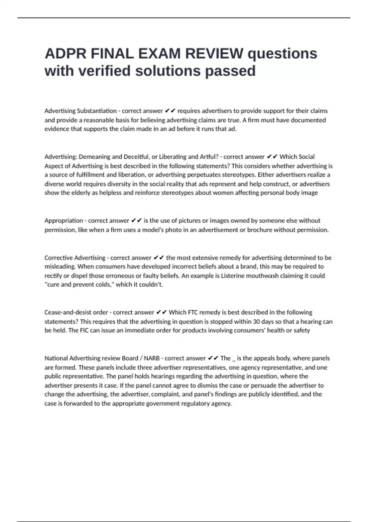 ADPR FINAL EXAM REVIEW questions with verified solutions passed