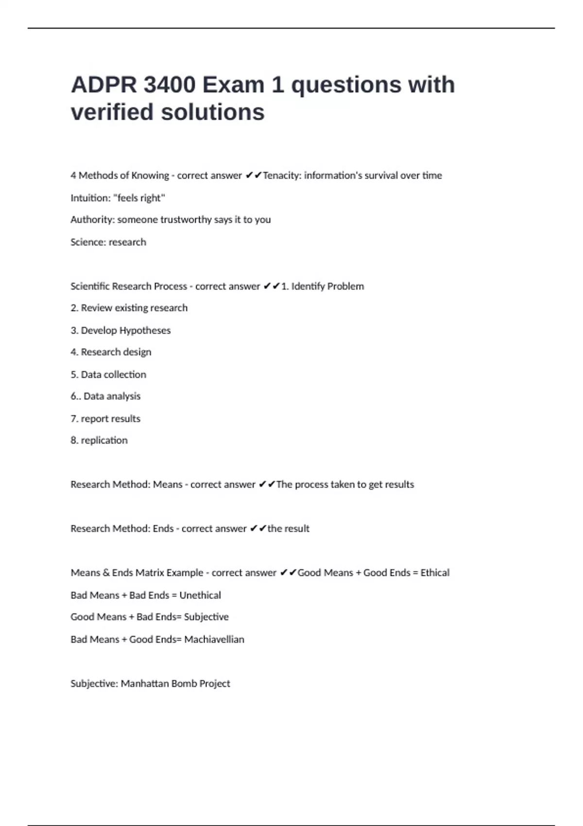 ADPR 3400 Exam 1 questions with verified solutions