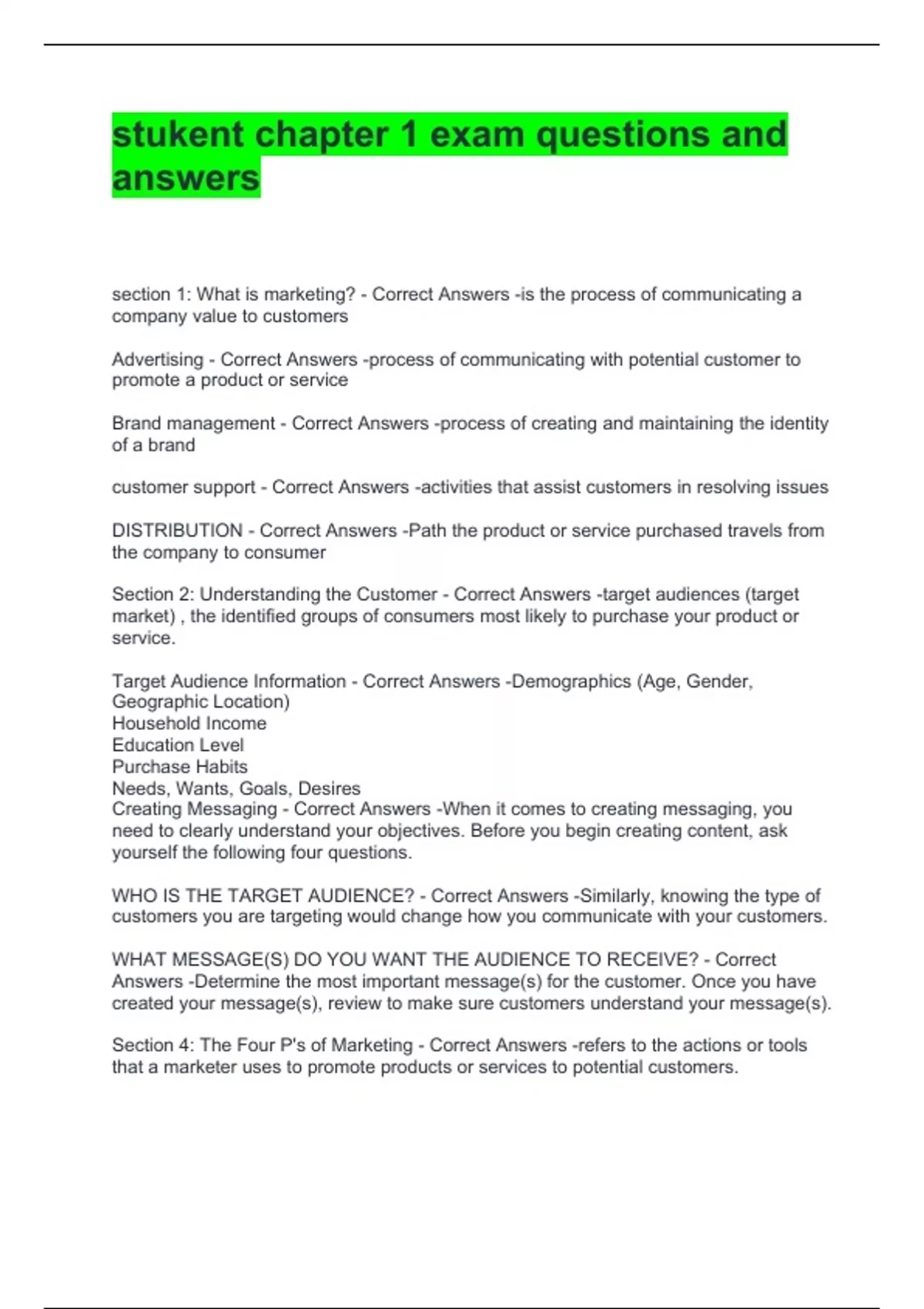 Section 2: Understanding the Customer - Correct Answers -target audiences (target