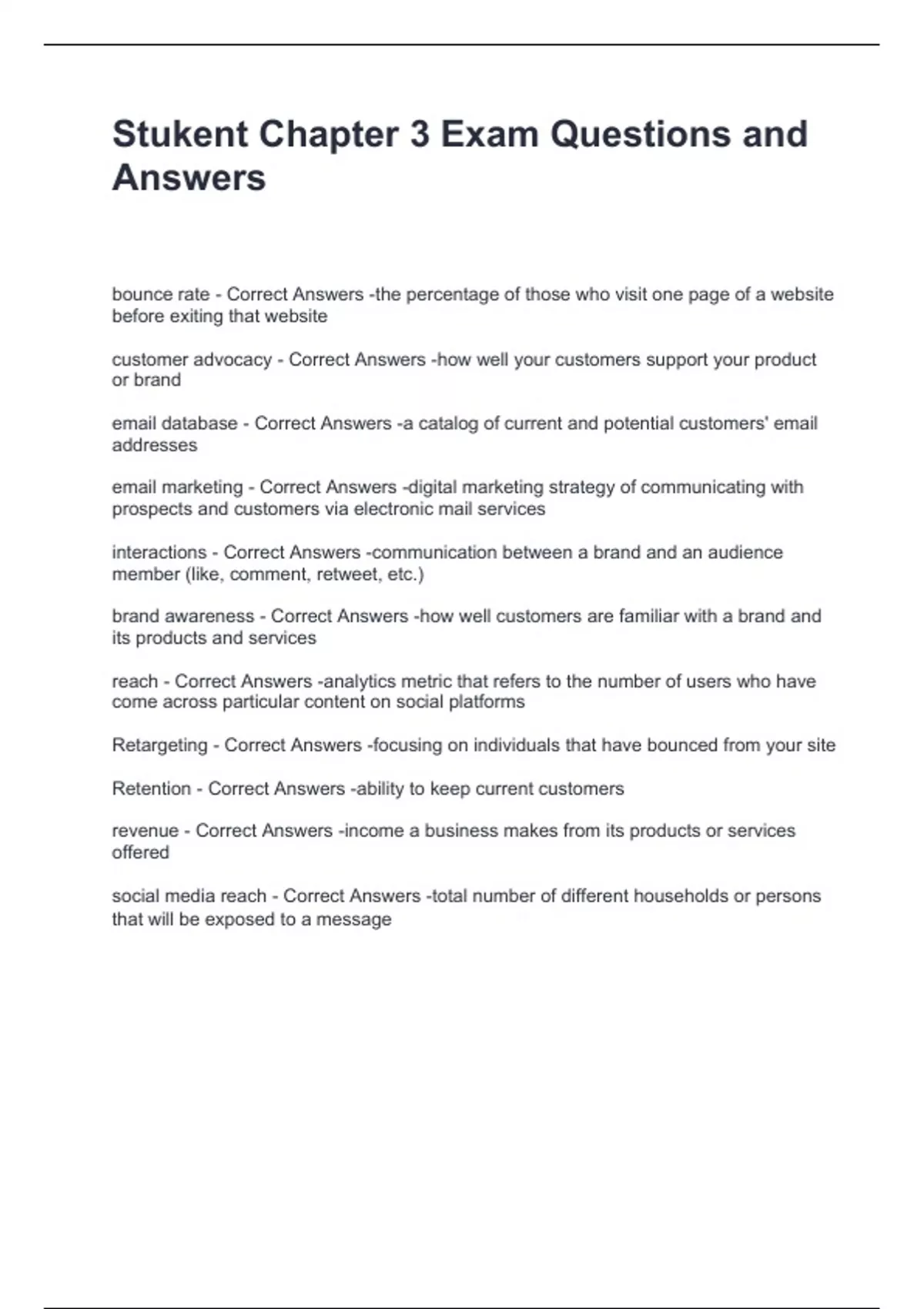 bounce rate - Correct Answers -the percentage of those who visit one page of a website