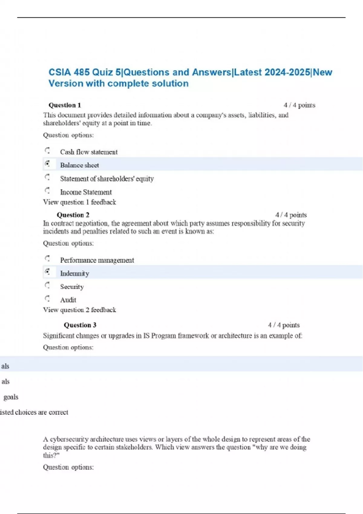 CSIA 485 Quiz 5|Questions and Answers|Latest |New Version with complete solution
