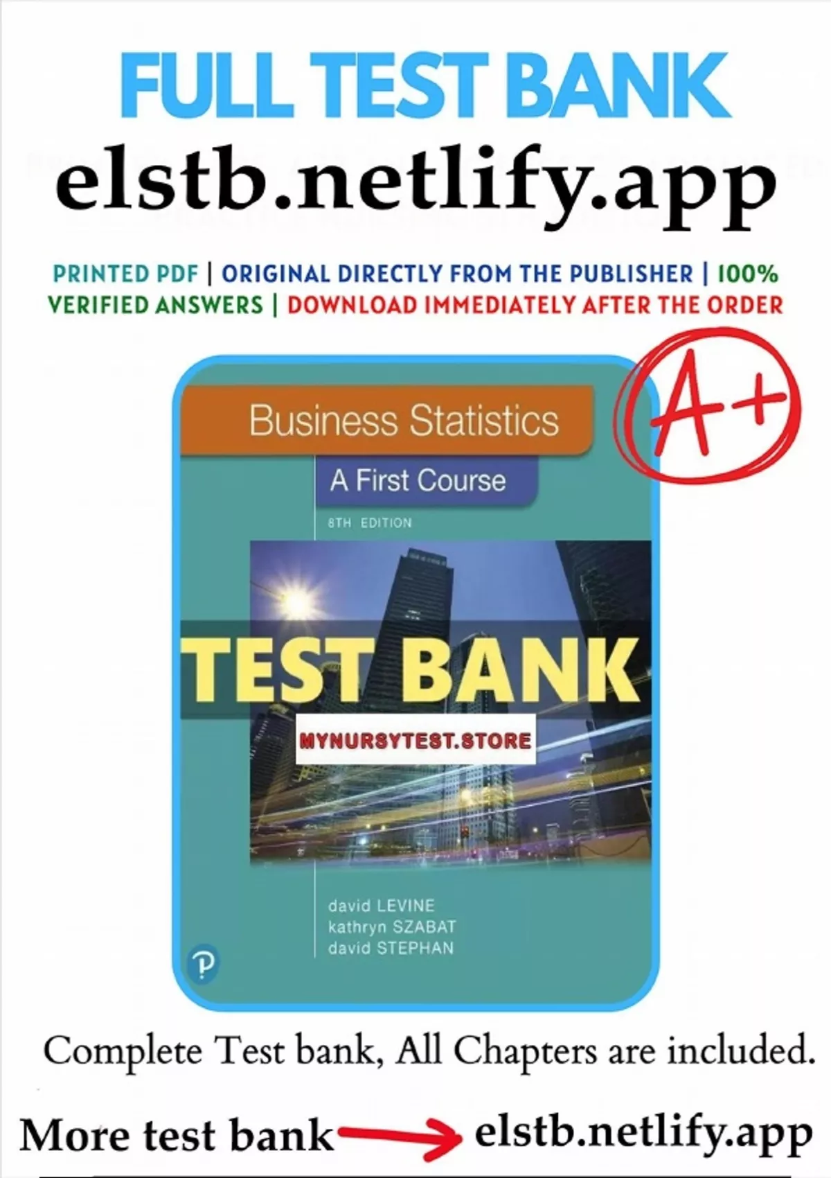 , DOWNLOAD THE Test Bank for Business Statistics First Course 8th Edition Levine