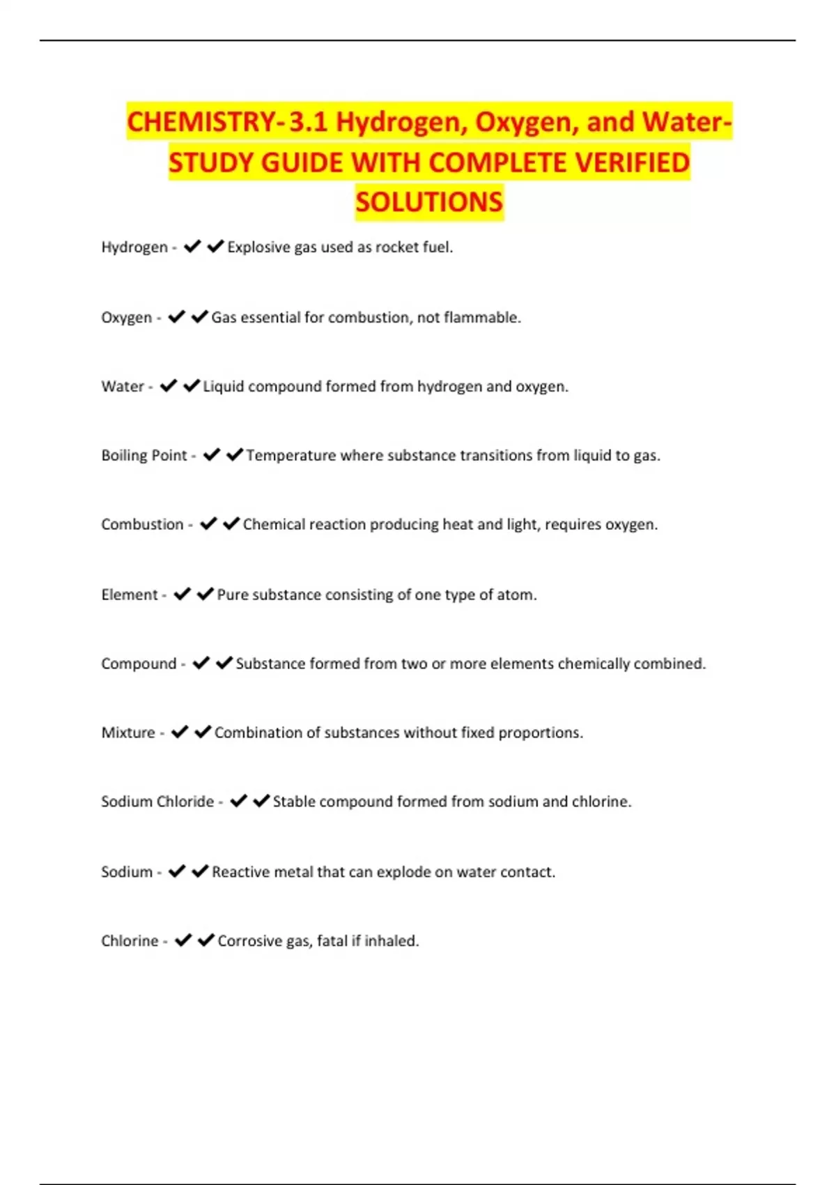 CHEMISTRY- 3.1 Hydrogen, Oxygen, and Water-