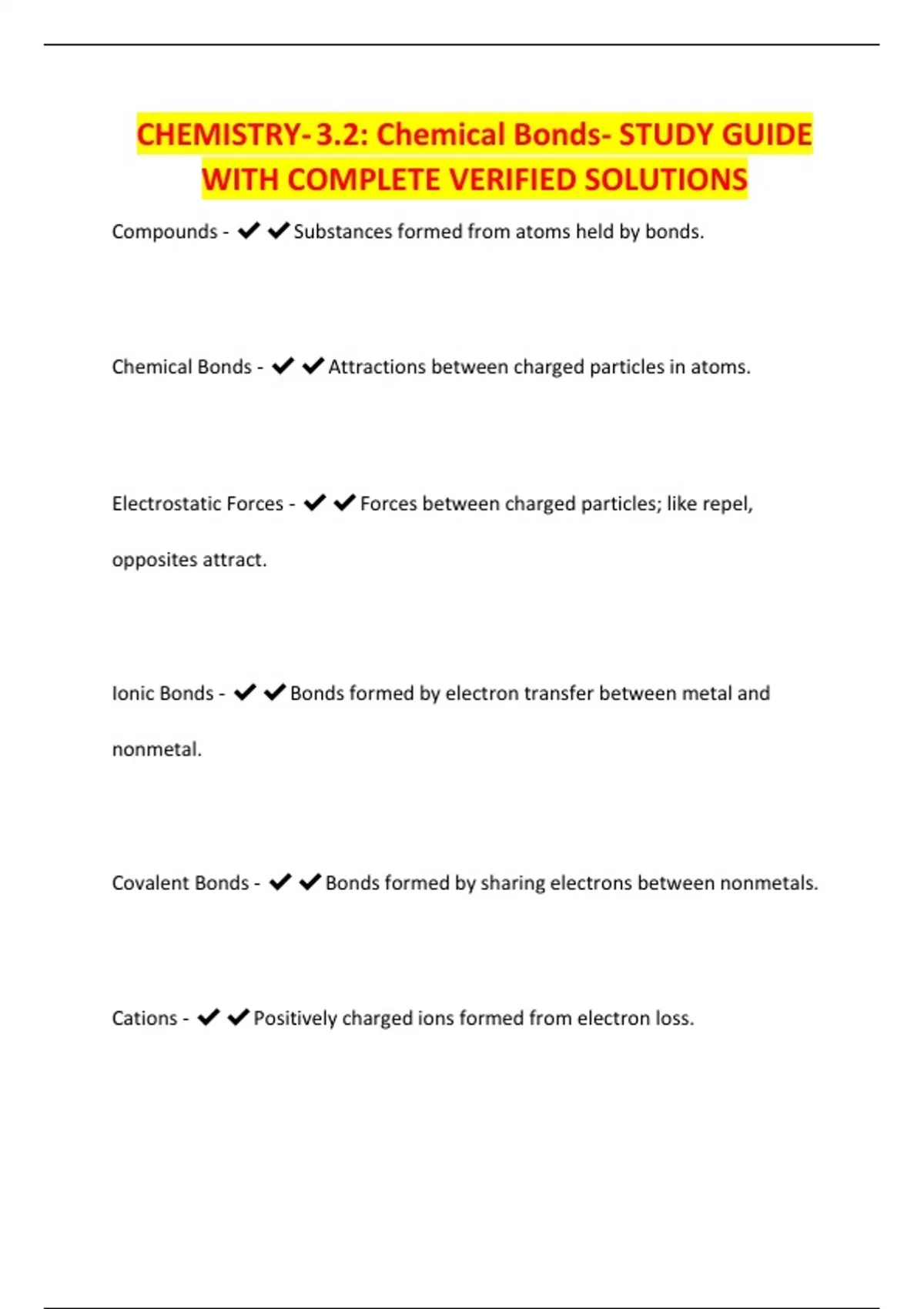 CHEMISTRY- 3.2: Chemical Bonds- STUDY GUIDE