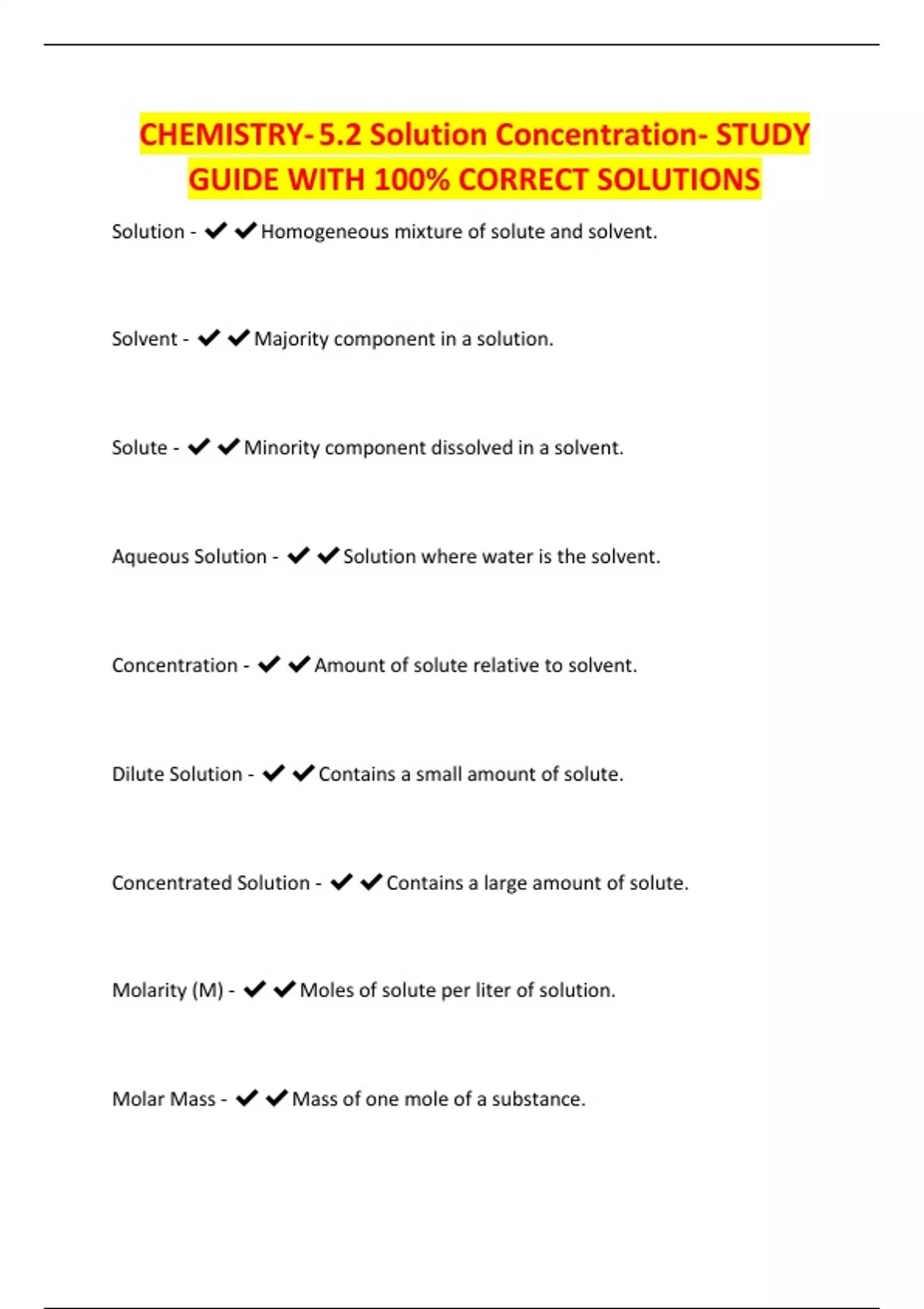 CHEMISTRY- 5.2 Solution Concentration- STUDY