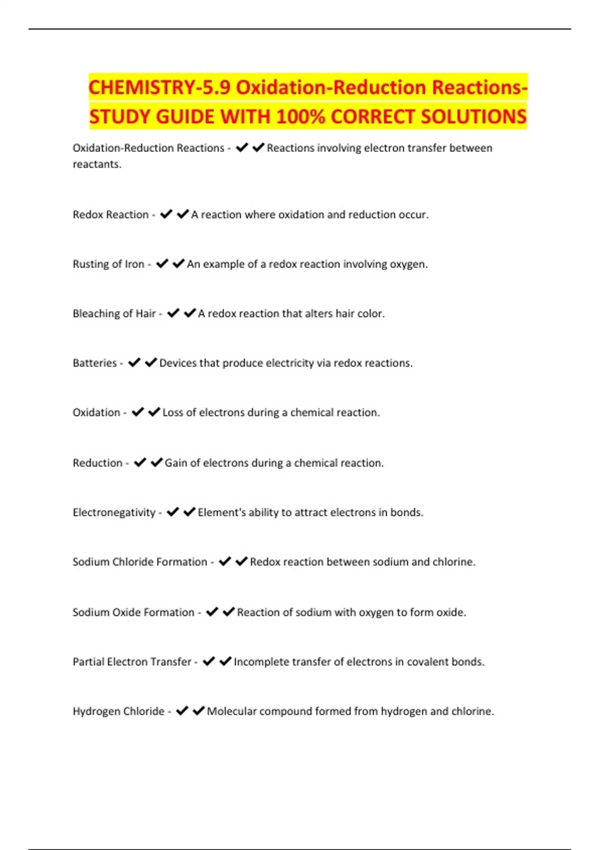 CHEMISTRY-5.9 Oxidation-Reduction Reactions-