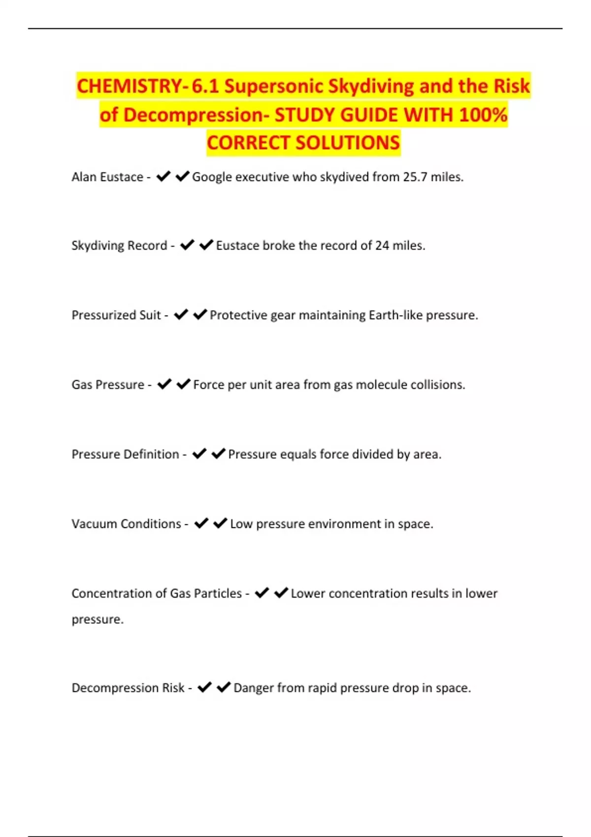 CHEMISTRY- 6.1 Supersonic Skydiving and the Risk