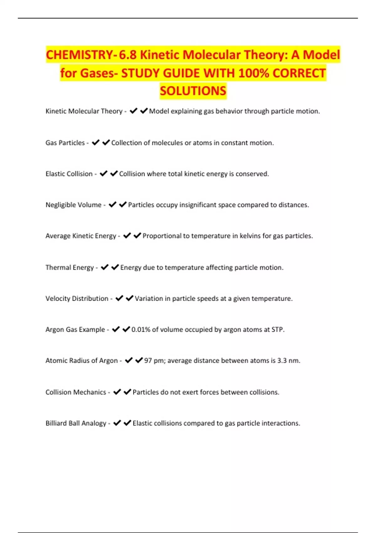 CHEMISTRY- 6.8 Kinetic Molecular Theory: A Model