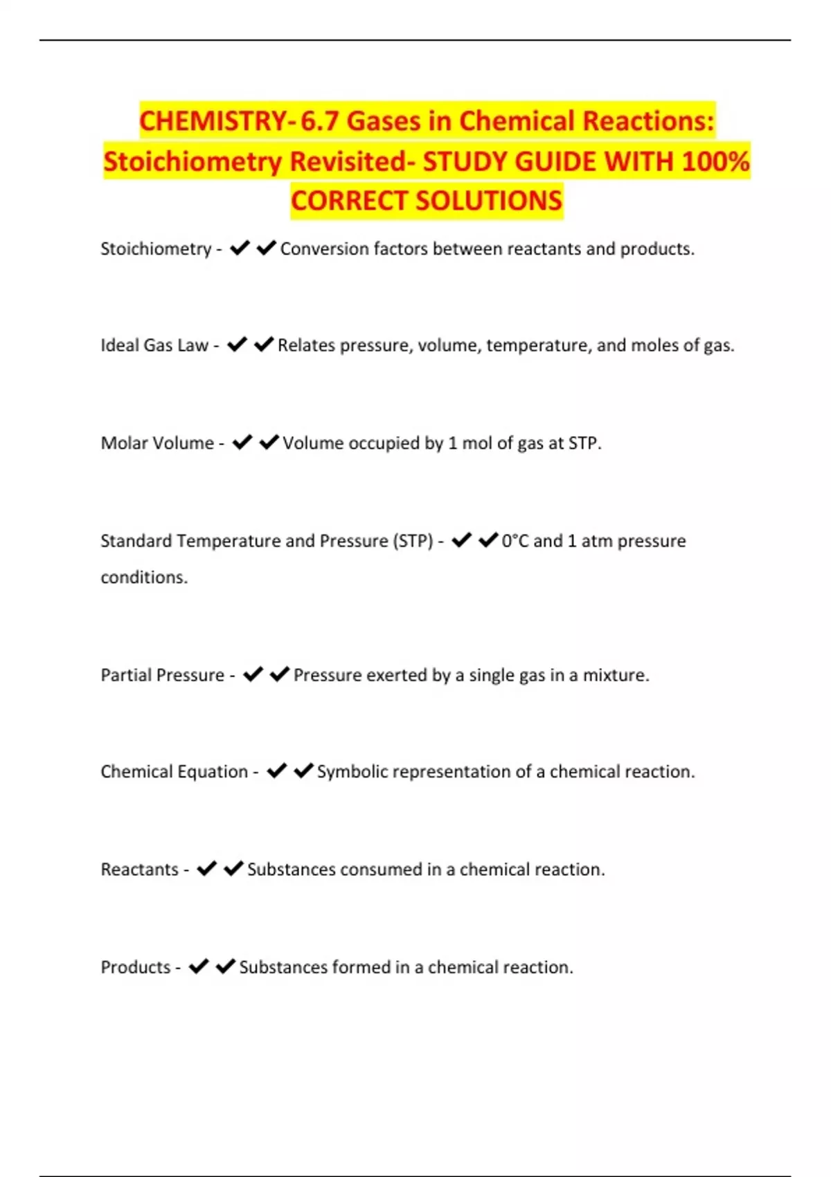 CHEMISTRY- 6.7 Gases in Chemical Reactions: