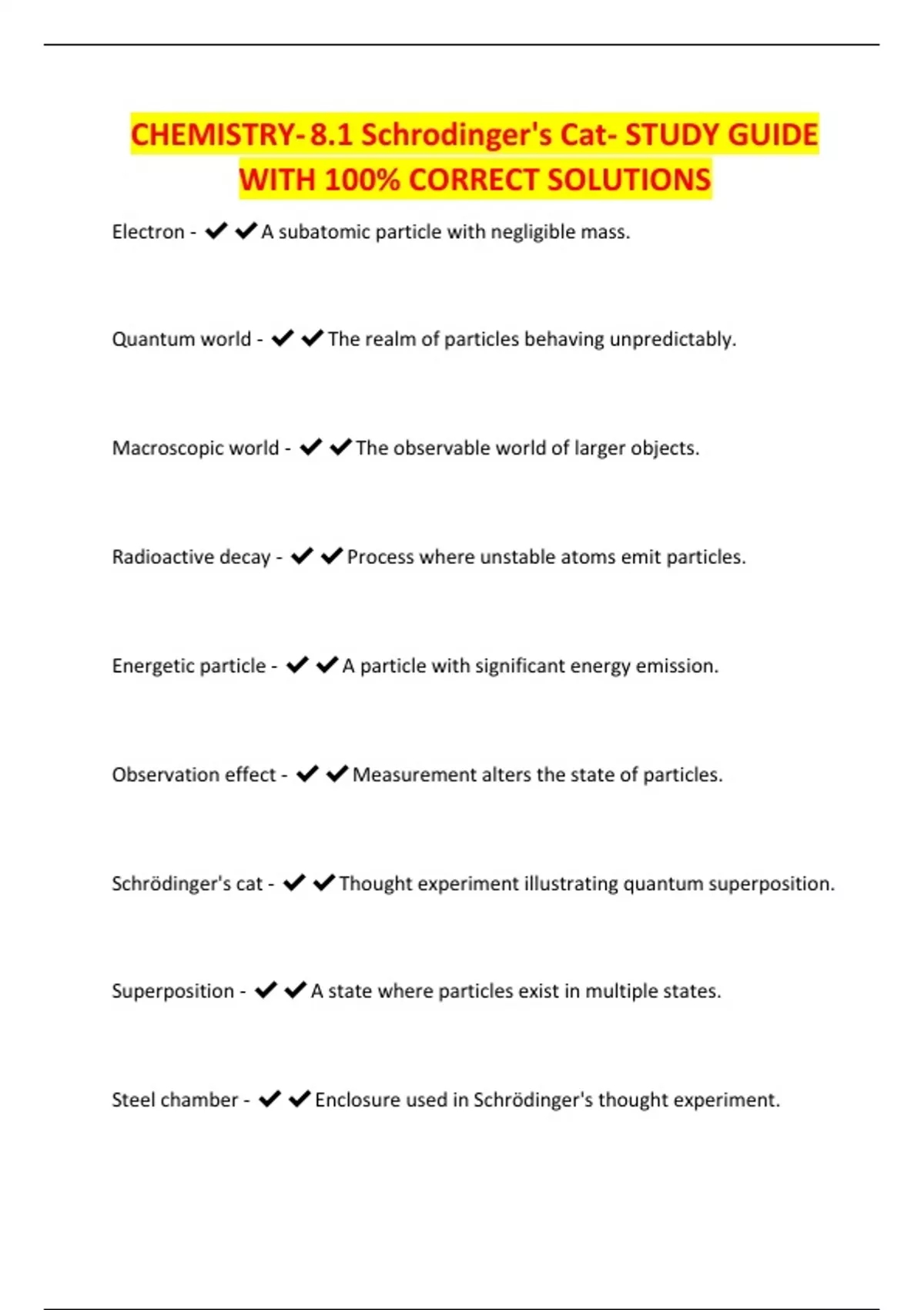 CHEMISTRY- 8.1 Schrodinger's Cat- STUDY GUIDE