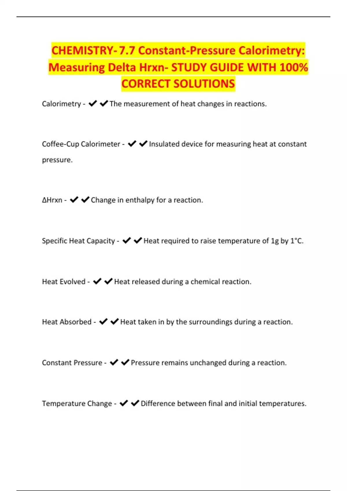 Measuring Delta Hrxn- STUDY GUIDE WITH 100%