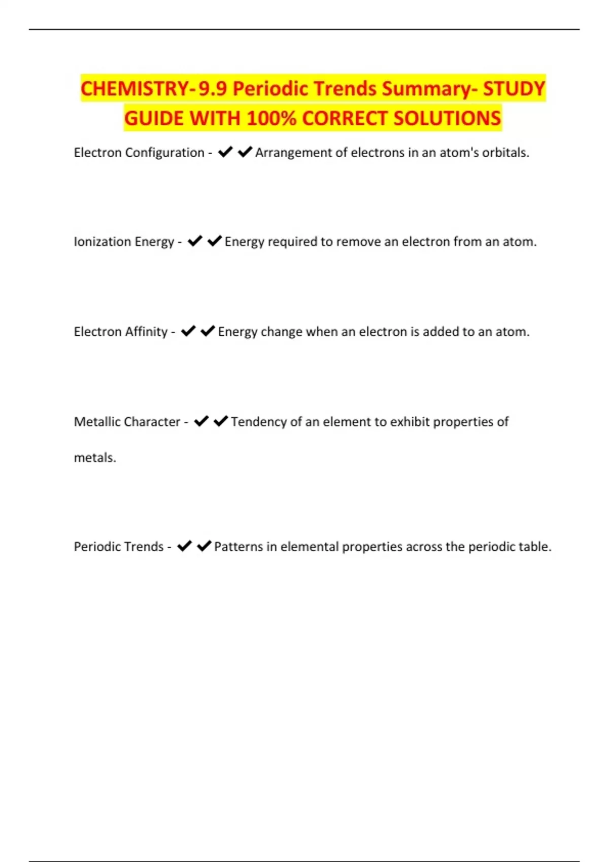 CHEMISTRY- 9.9 Periodic Trends Summary- STUDY
