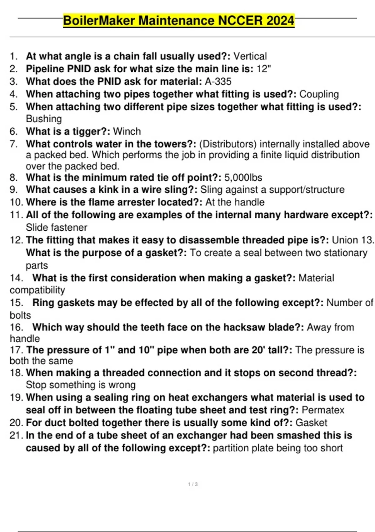 12. The fitting that makes it easy to disassemble threaded pipe is?: Union 13.