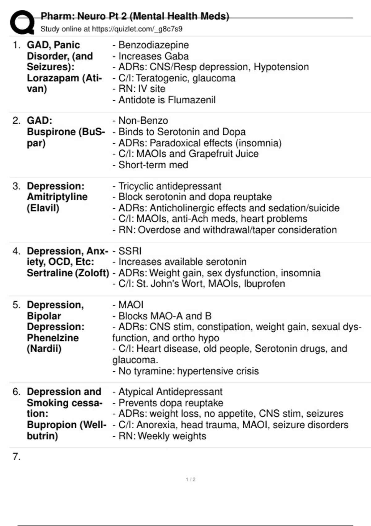 Pharm: Neuro Pt 2 (Mental Health Meds)
