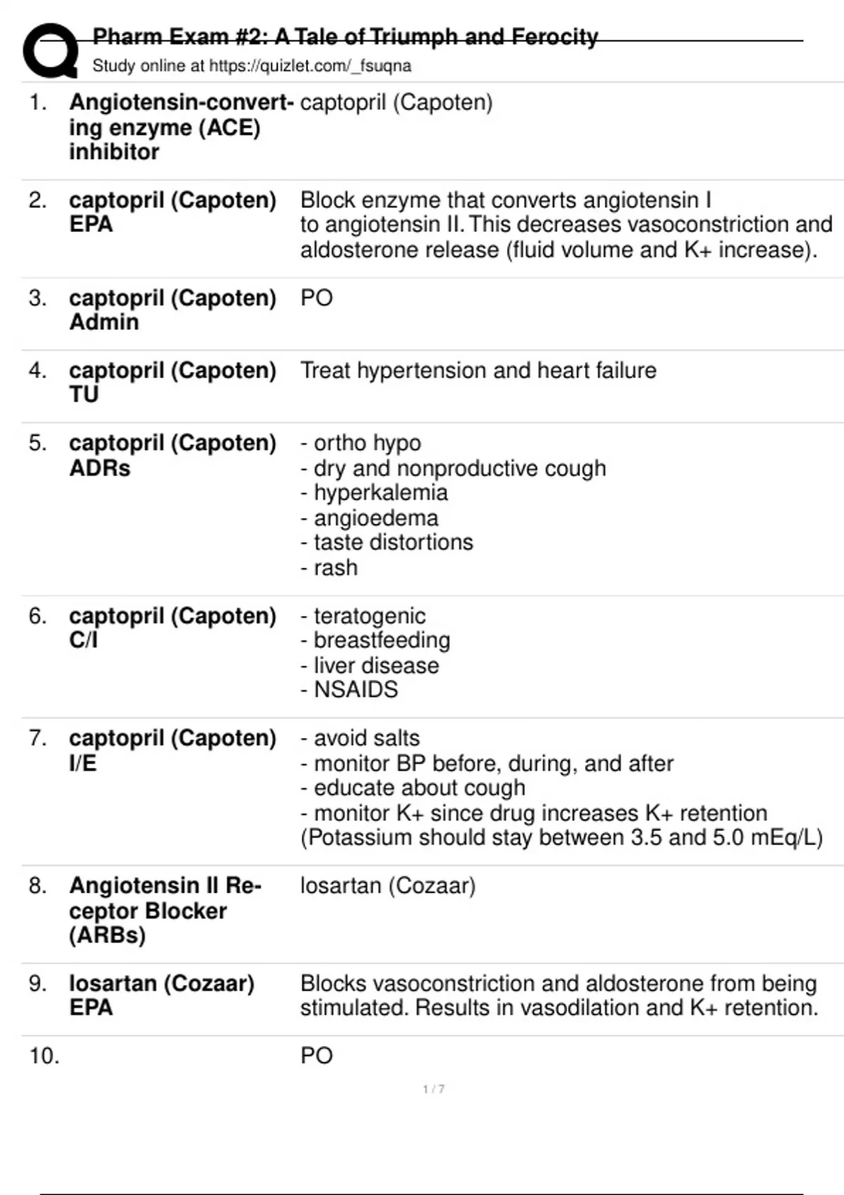 2. captopril (Capoten) Block enzyme that converts angiotensin I