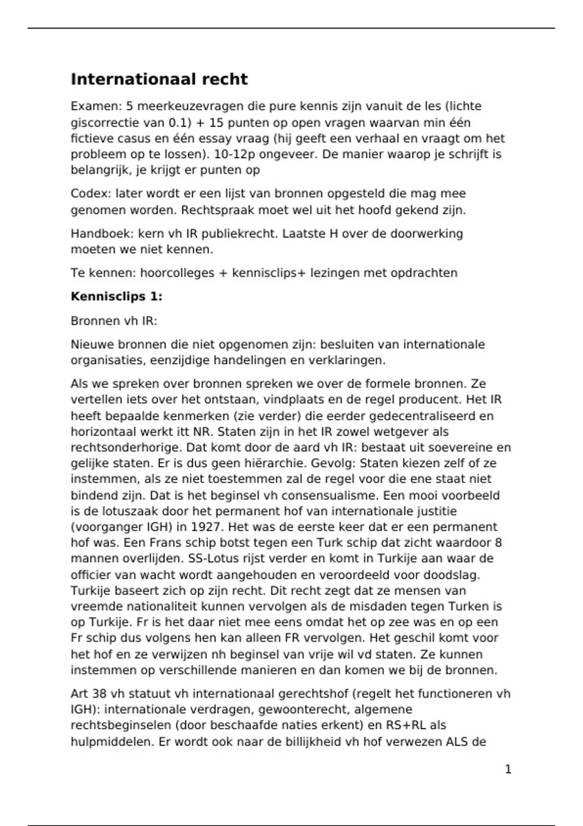 Handboek: kern vh IR publiekrecht. Laatste H over de doorwerking