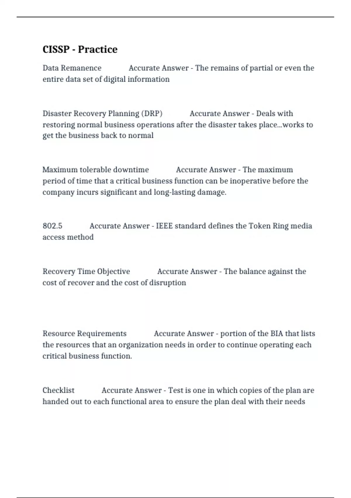 Disaster Recovery Planning (DRP) Accurate Answer - Deals with