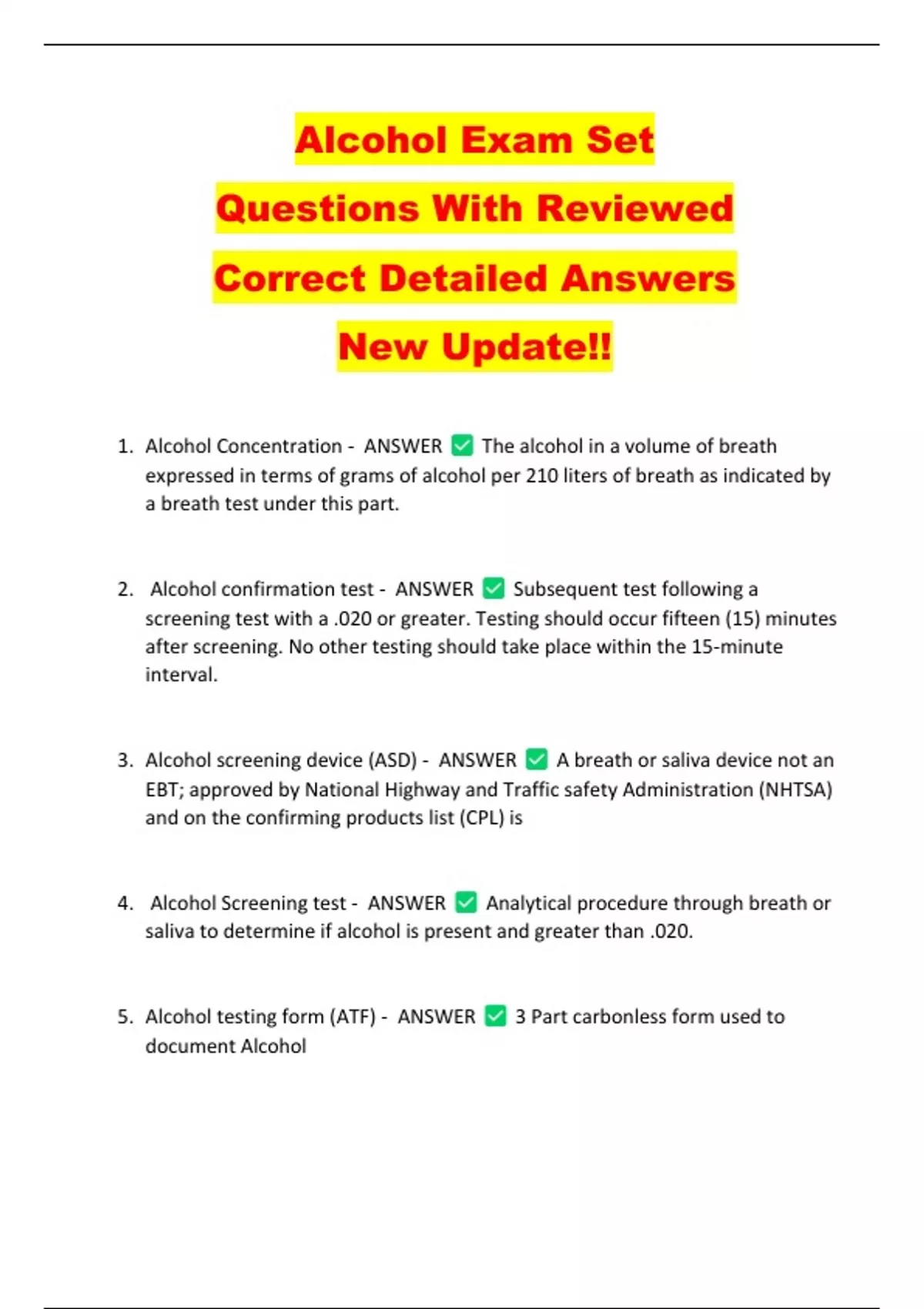 2. Alcohol confirmation test - ANSWER Subsequent test following a