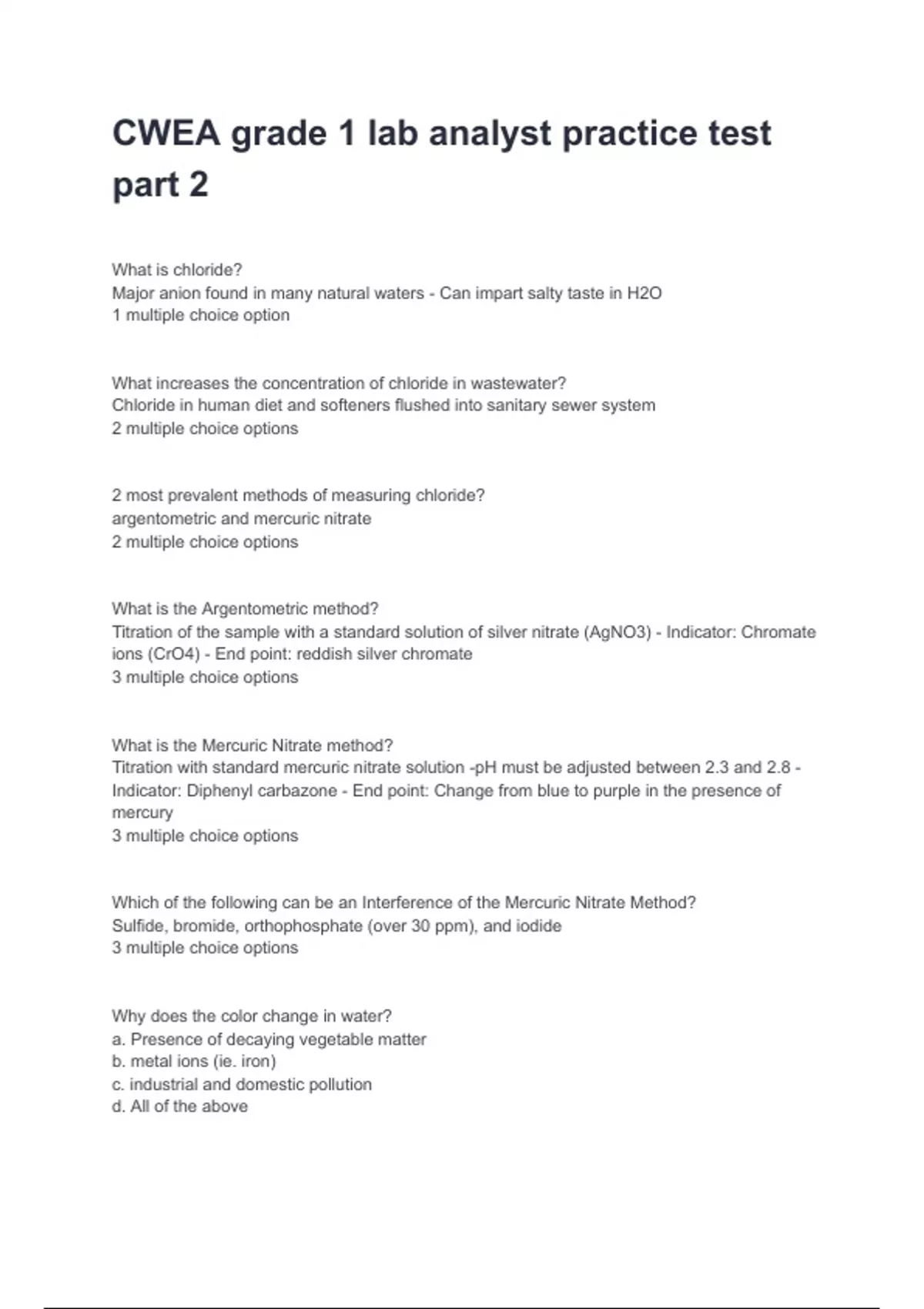 Major anion found in many natural waters - Can impart salty taste in H2O