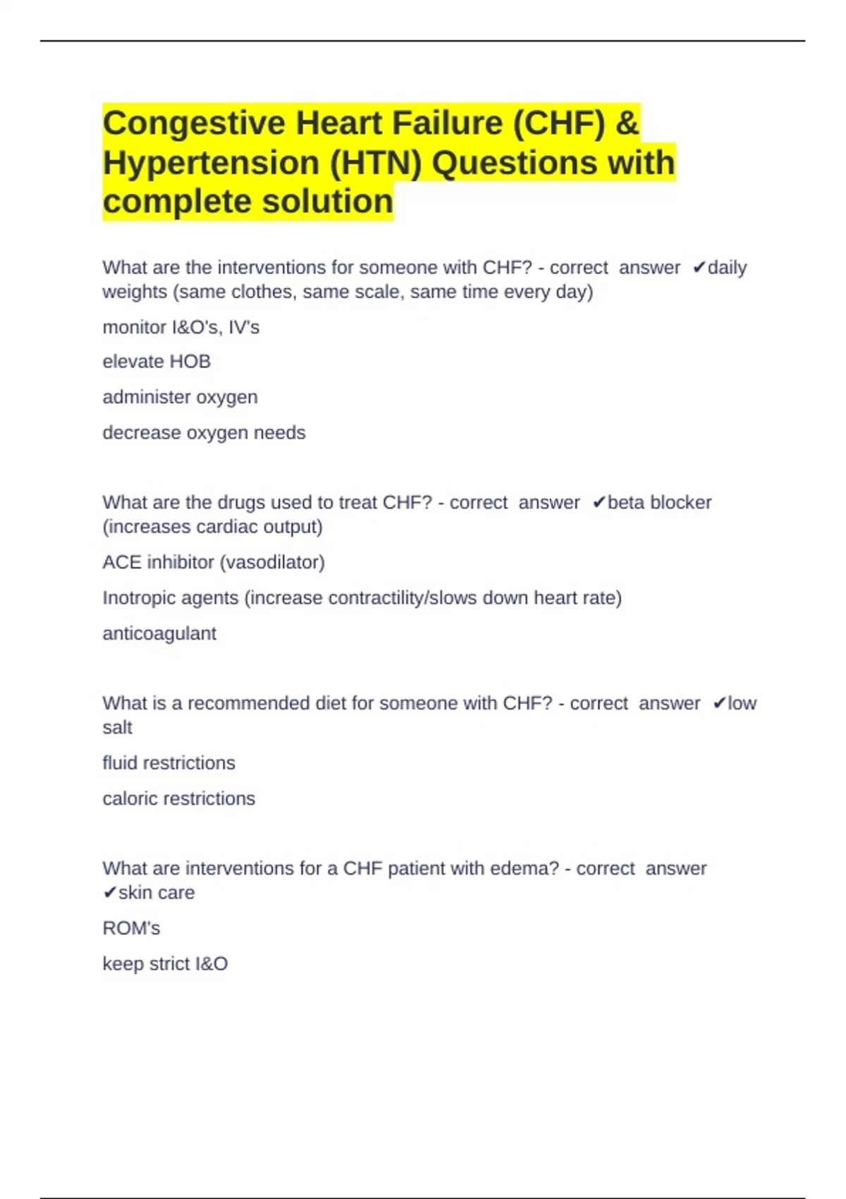 What are the interventions for someone with CHF? - correct answer ✔daily