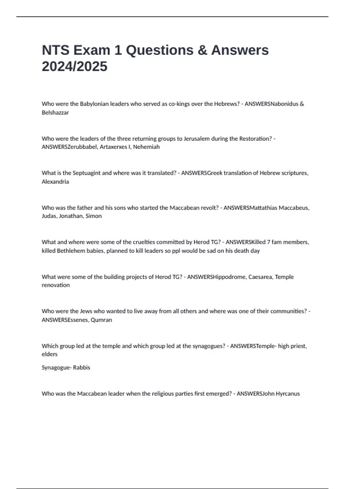 ANSWERSZerubbabel, Artaxerxes I, Nehemiah
