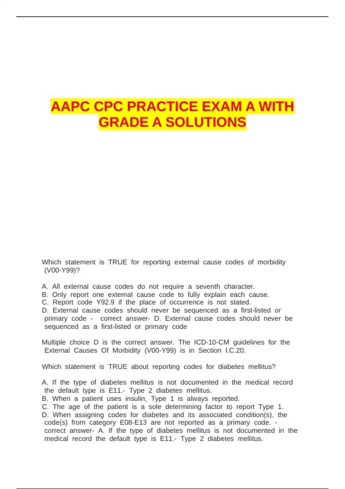 AAPC CPC PRACTICE EXAM A WITH GRADE A SOLUTIONS.