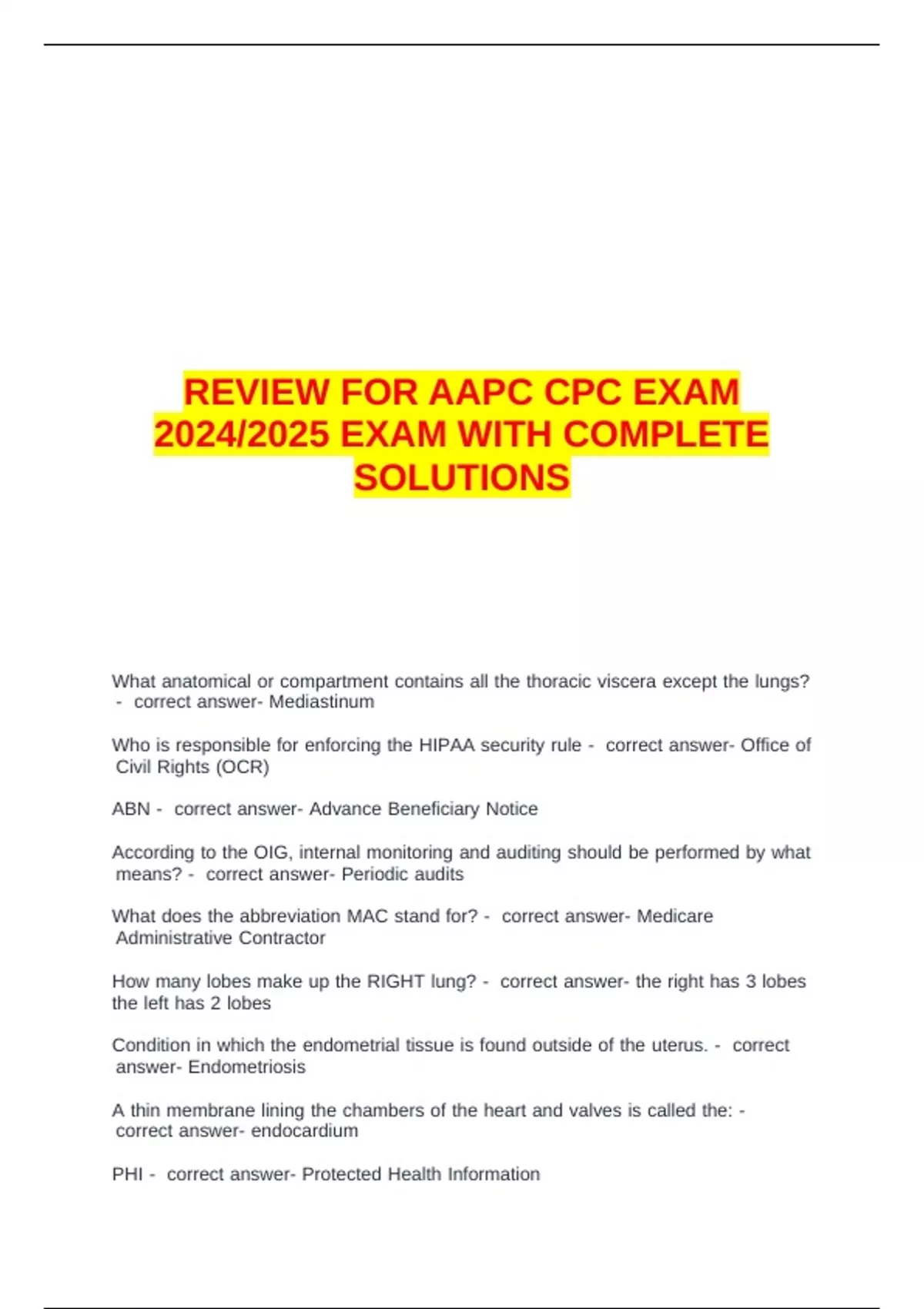 REVIEW FOR AAPC CPC EXAM EXAM WITH COMPLETE SOLUTIONS