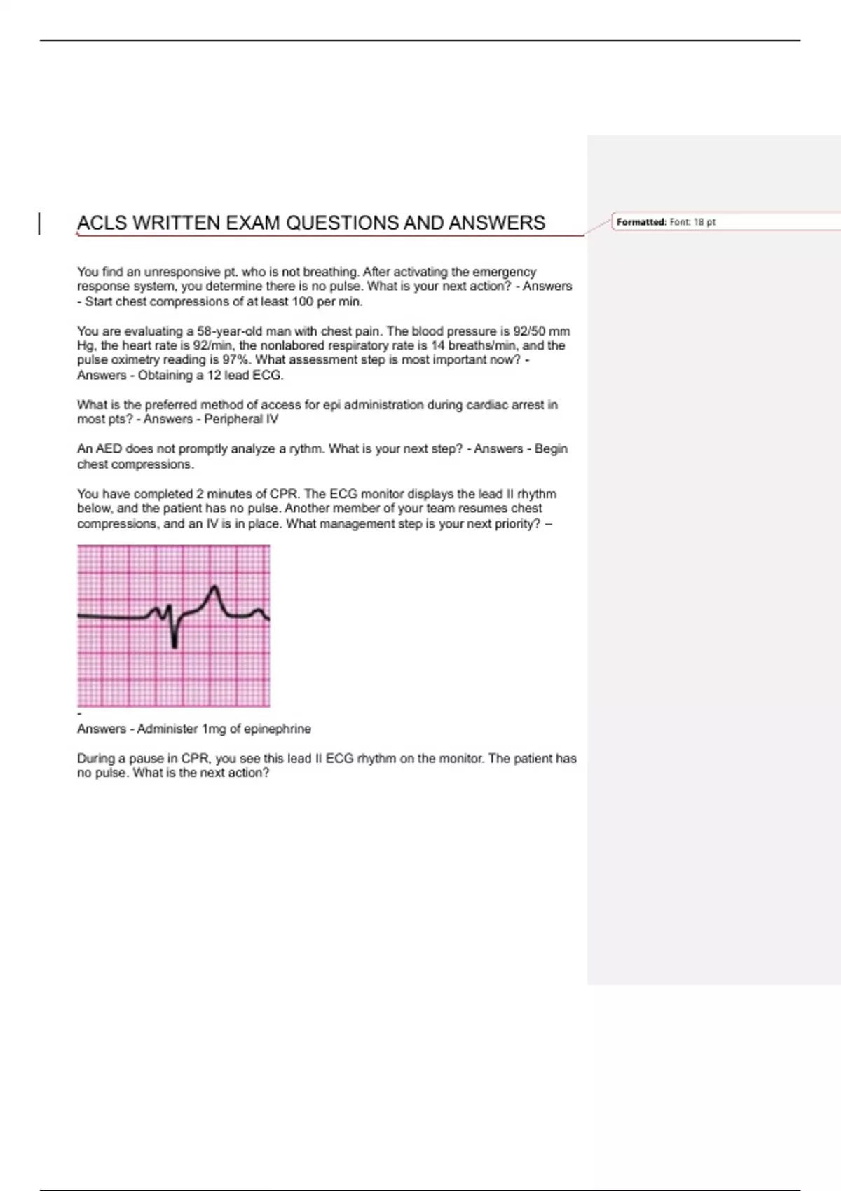 ACLS WRITTEN EXAM QUESTIONS AND ANSWERS Formatted: Font: 18 pt