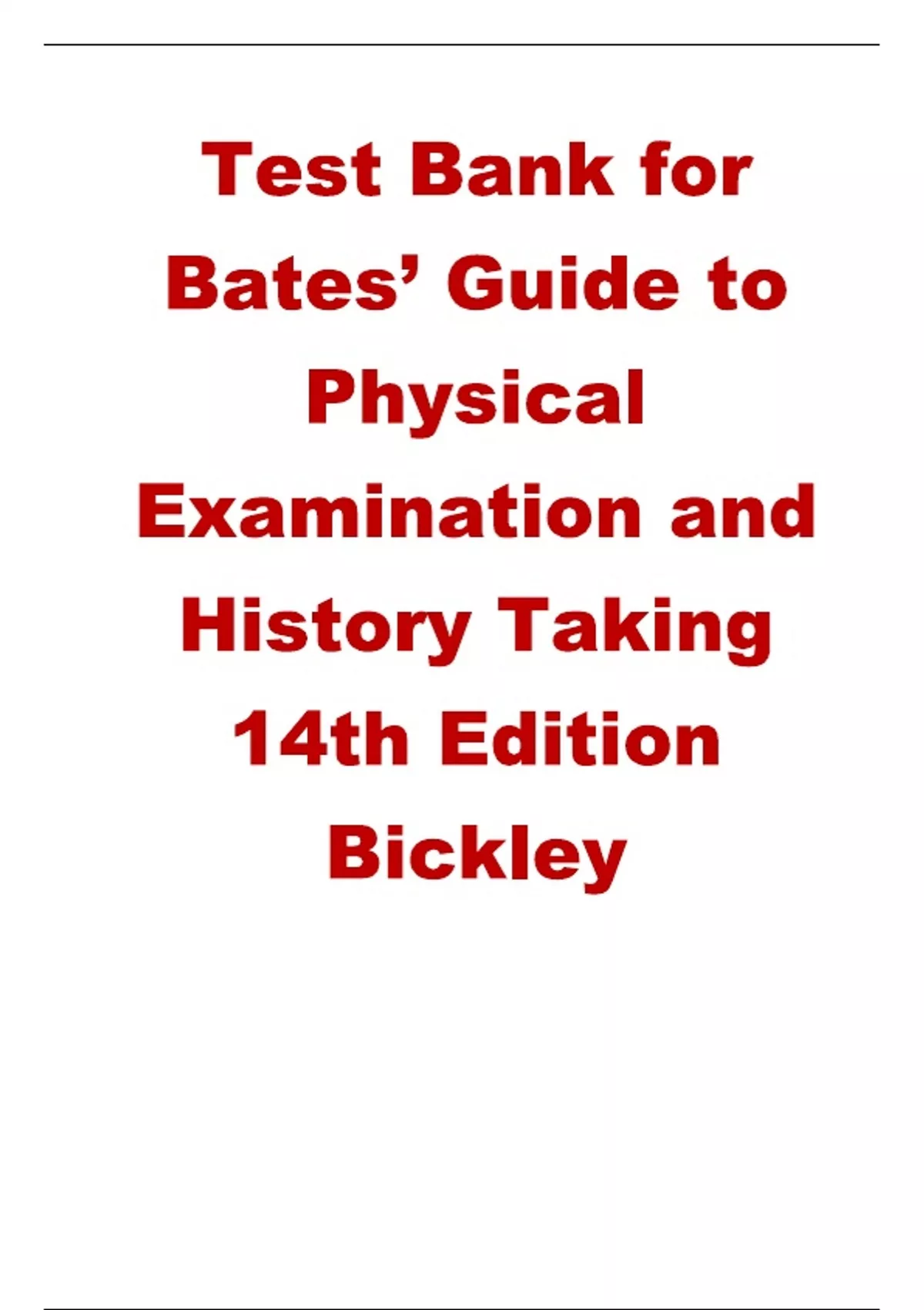 TEST BANK. Bates' Guide To Physical Examination And History. Taking 14th Edition By Bickley, Complete Chapters 1 To 27