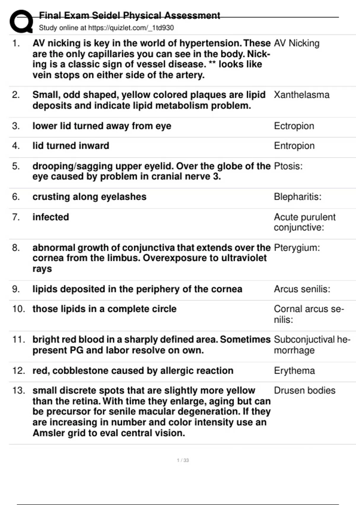 , Final Exam Seidel Physical Assessment