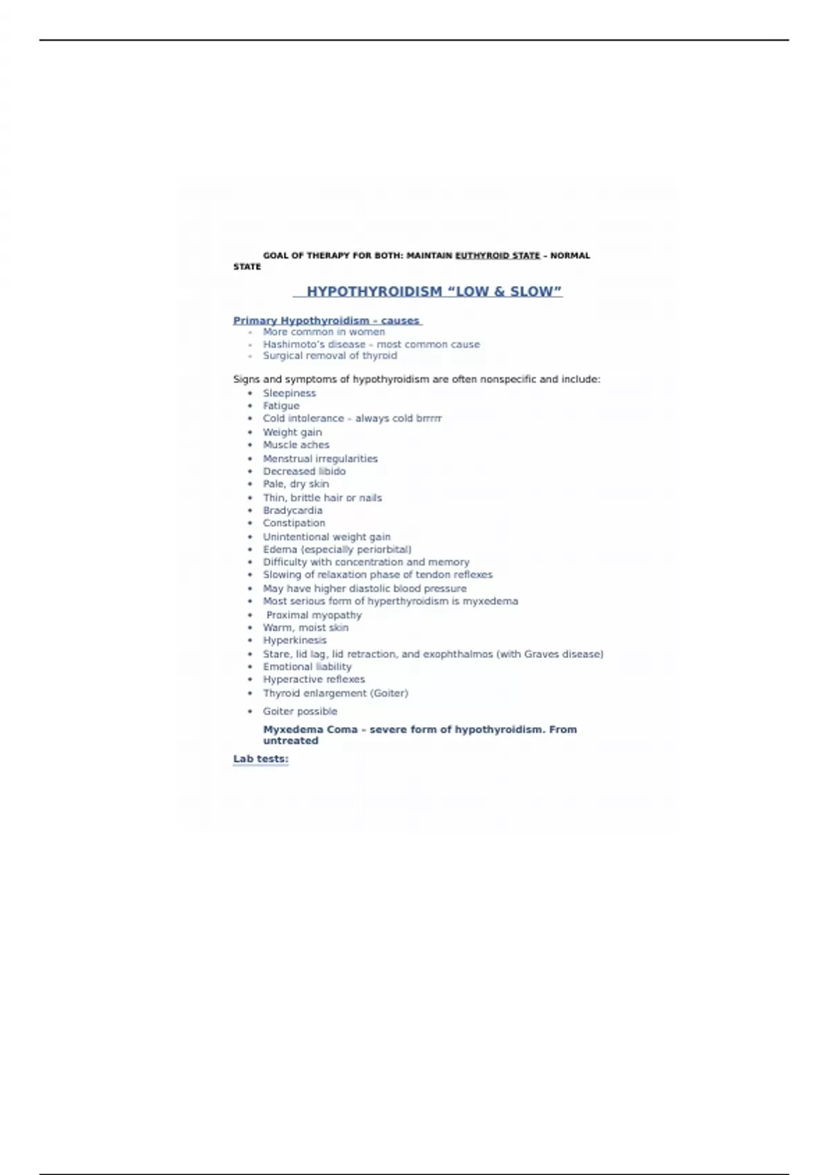 HYPOTHYROIDISM “LOW & SLOW”