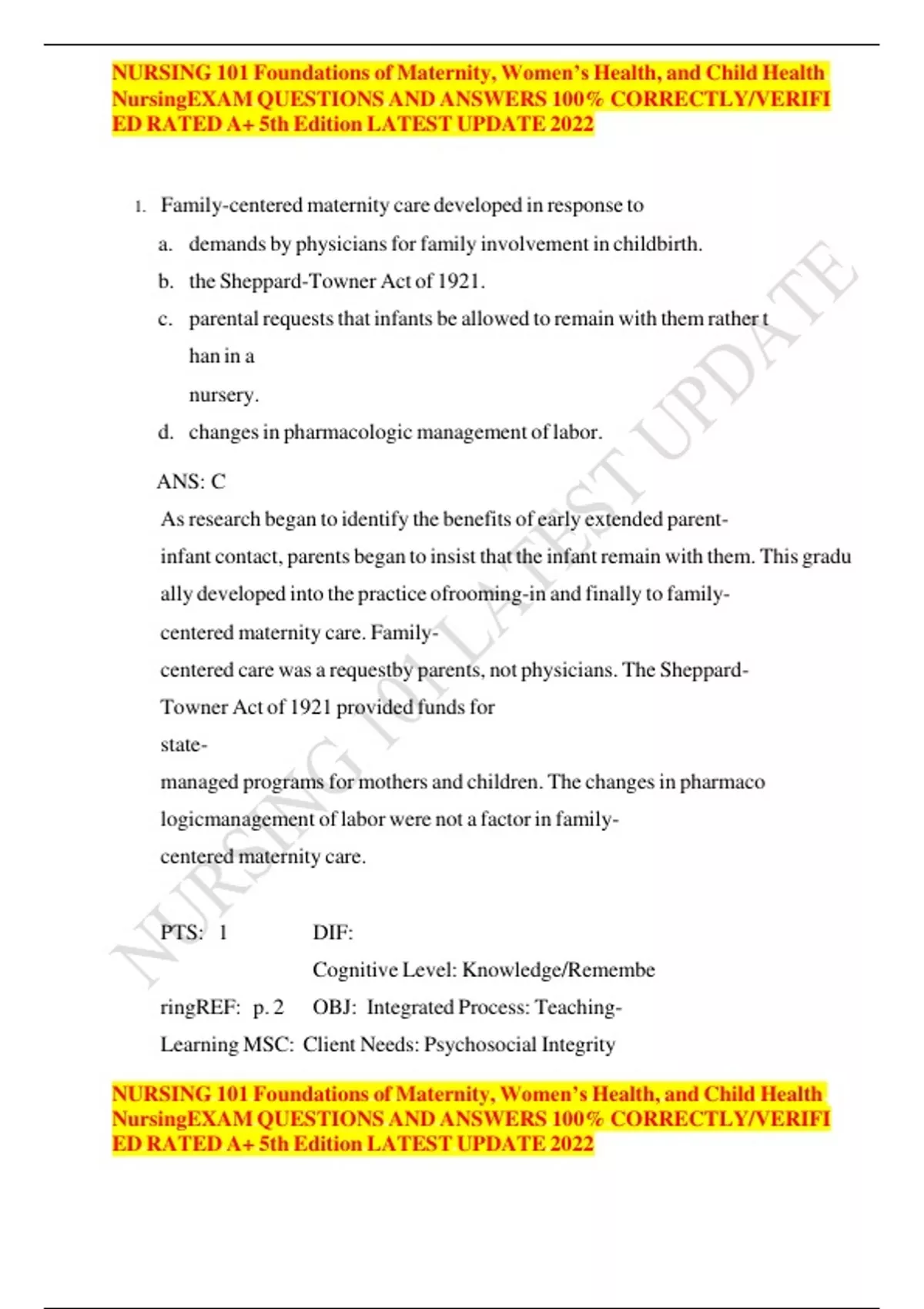 NURSING 101 Foundations of Maternity, Women’s Health, and Child Health