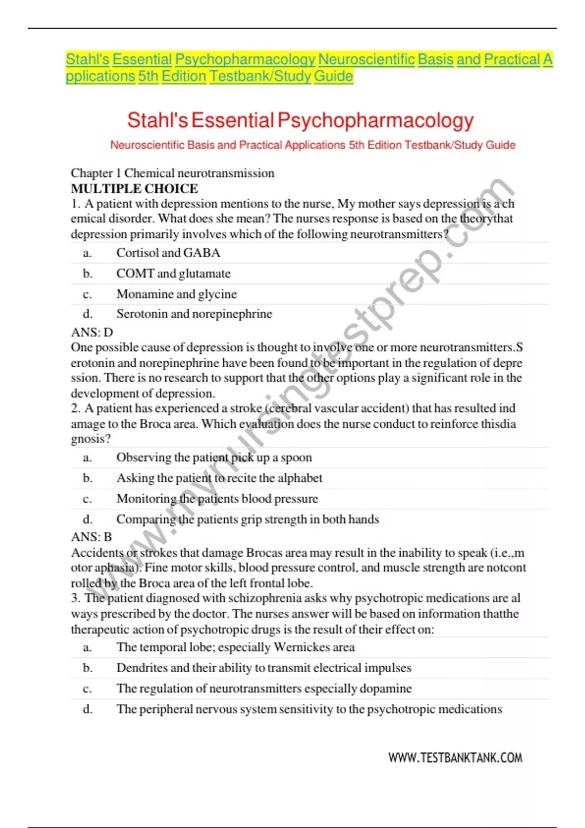 NeuroscientificnBasisnandnPracticalnApplicationsn 5thnEditionnTestbank/StudynGuide
