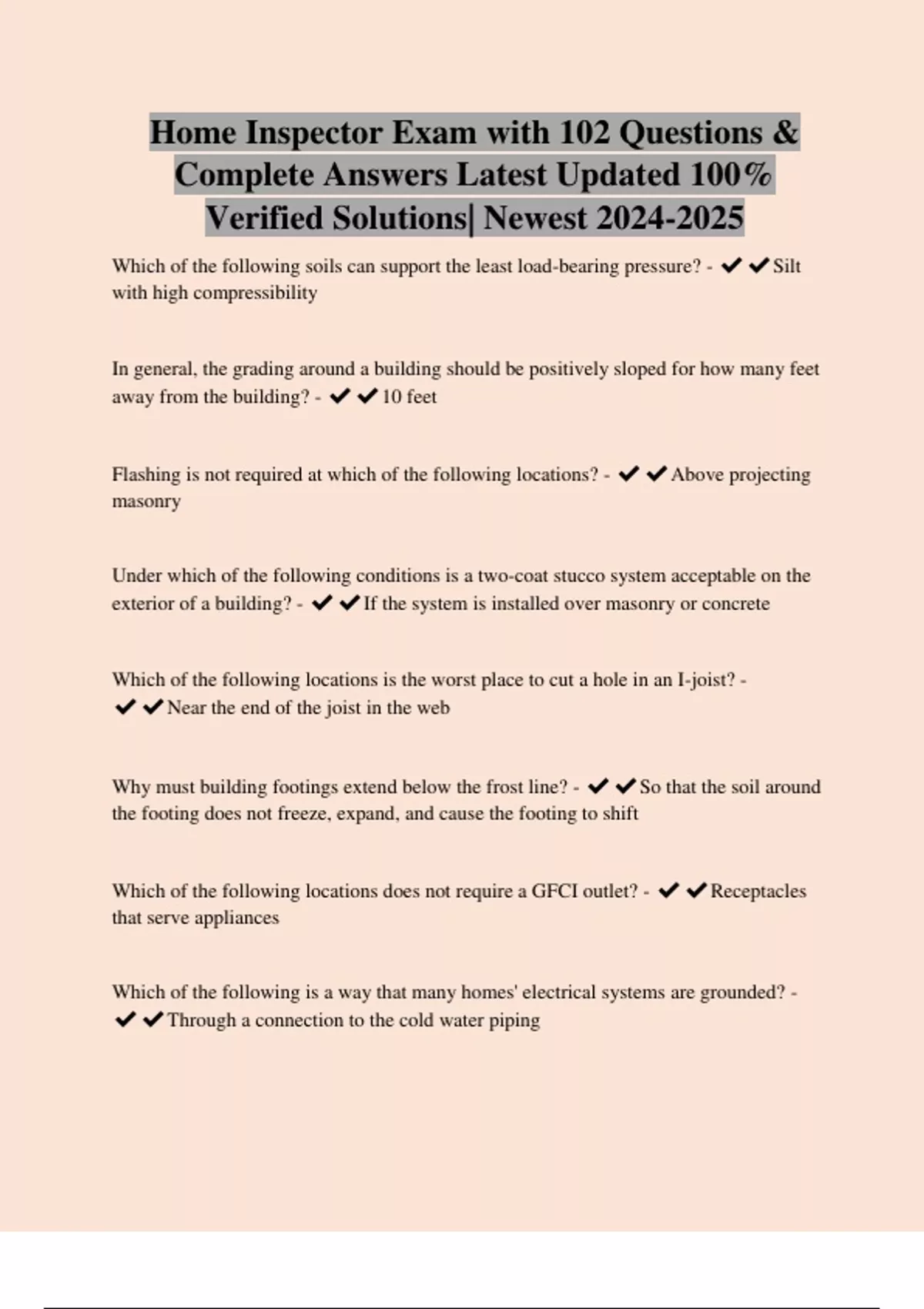 Home Inspector Exam with 102 Questions &