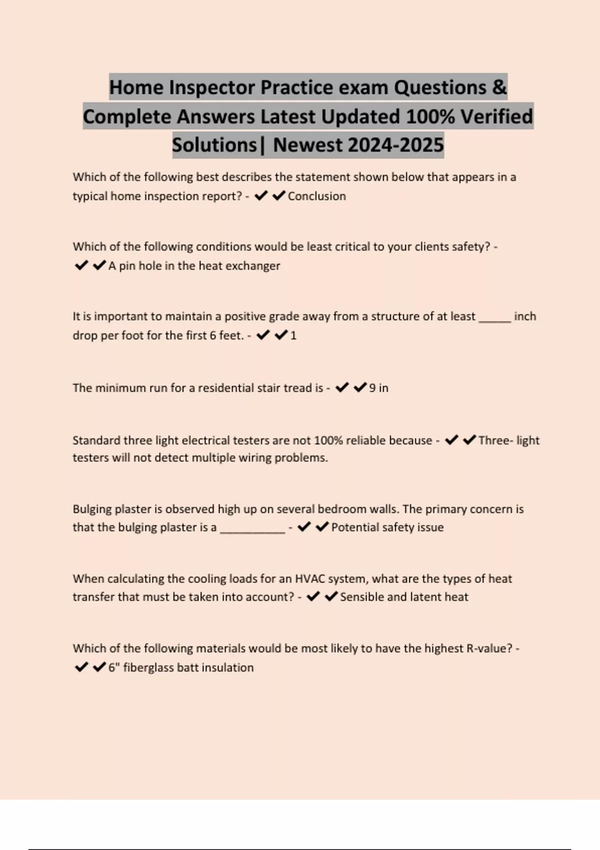 Home Inspector Practice exam Questions &