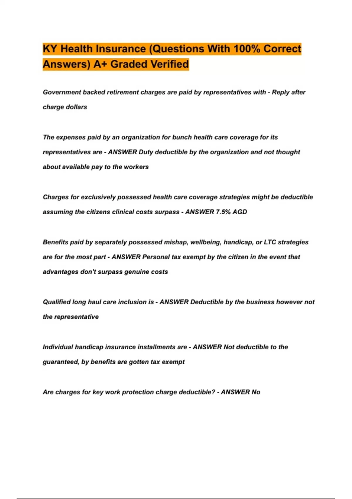 Individual handicap insurance installments are - ANSWER Not deductible to the
