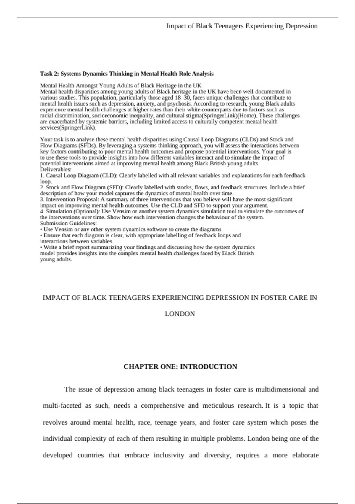 IMPACT OF BLACK TEENAGERS EXPERIENCING DEPRESSION IN FOSTER CARE IN