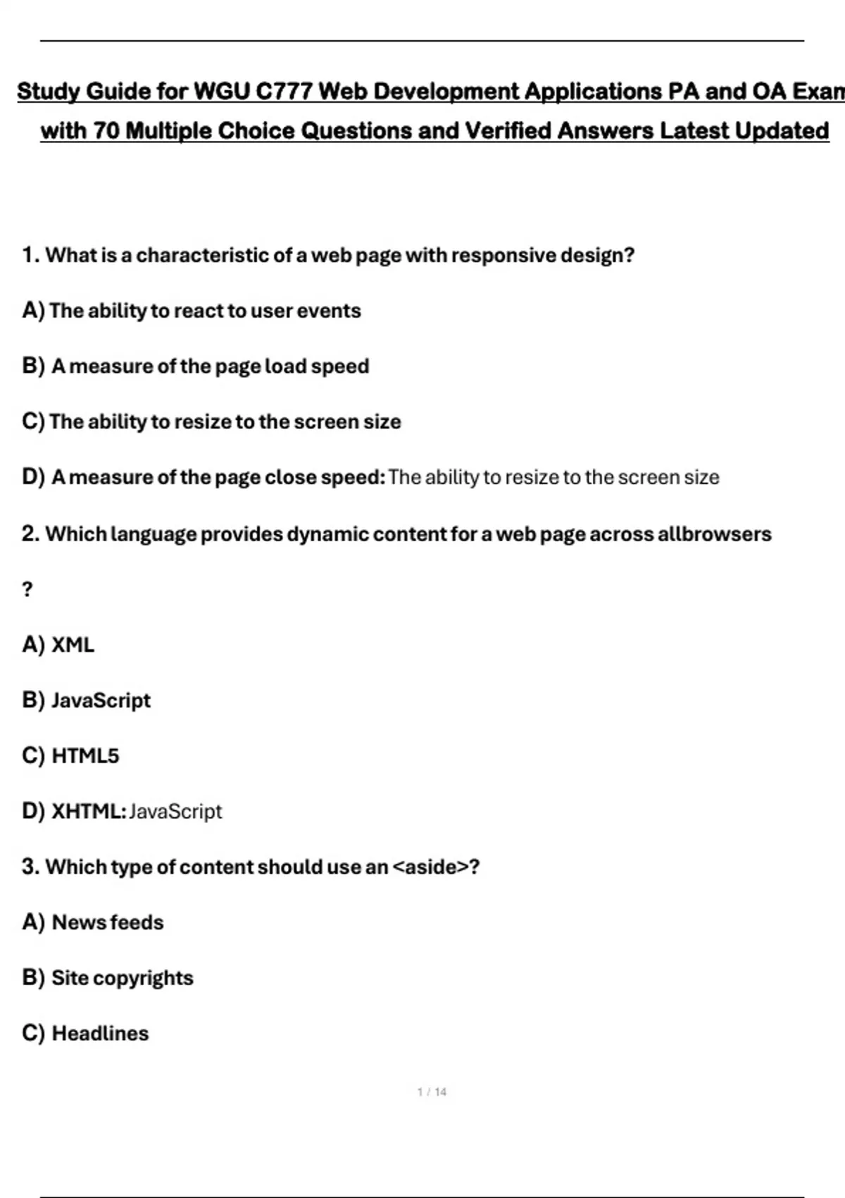 1. What is a characteristic of a web page with responsive design?