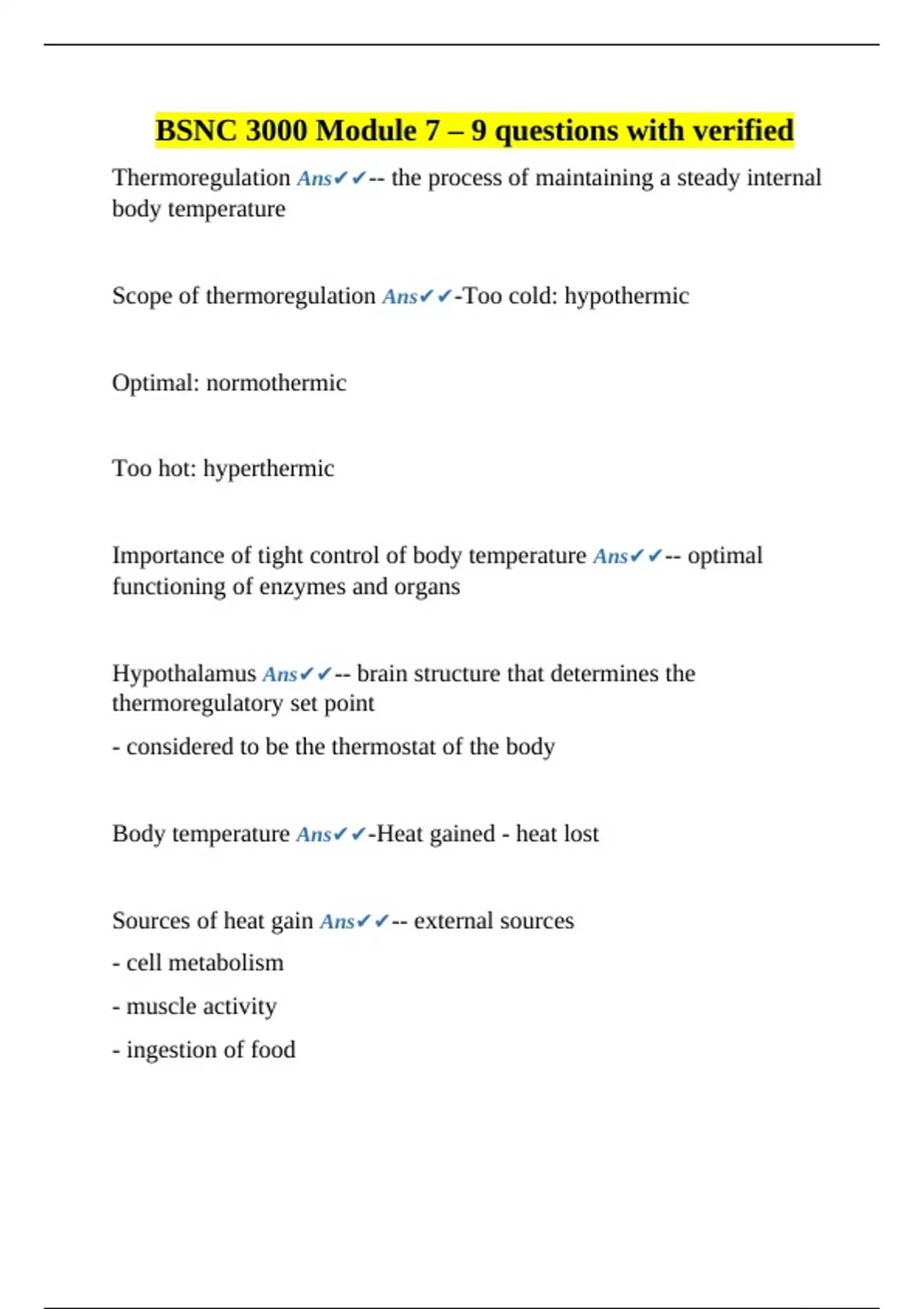 Hyperthermia Ans✔✔-- an increase in core body temperature above