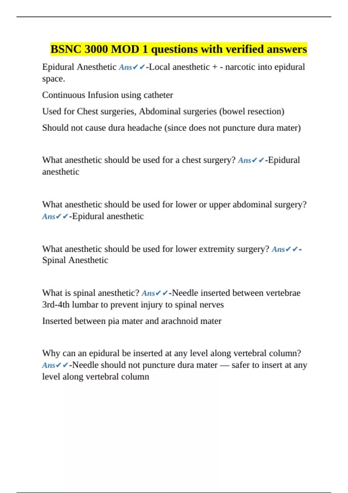 Ans✔✔-Epidural anesthetic