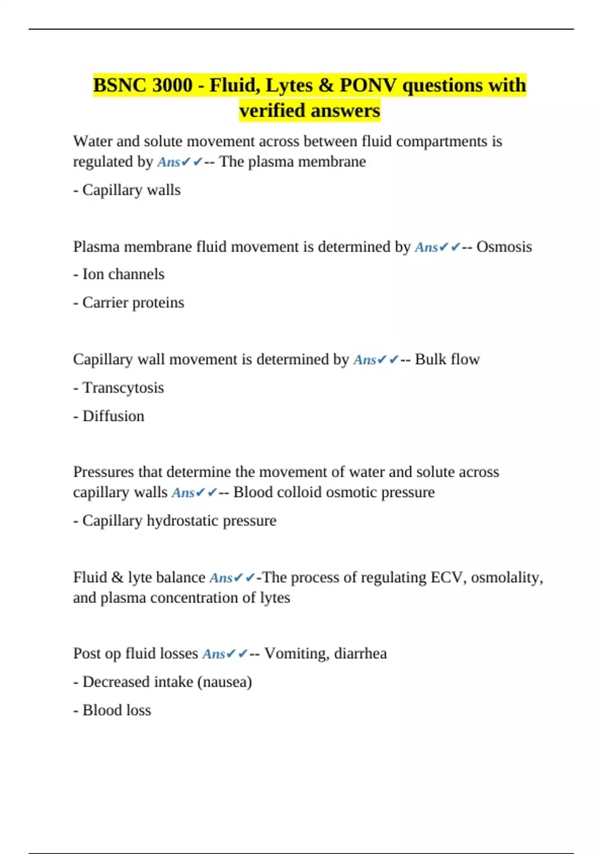 Fluid & lyte balance Ans✔✔-The process of regulating ECV, osmolality,