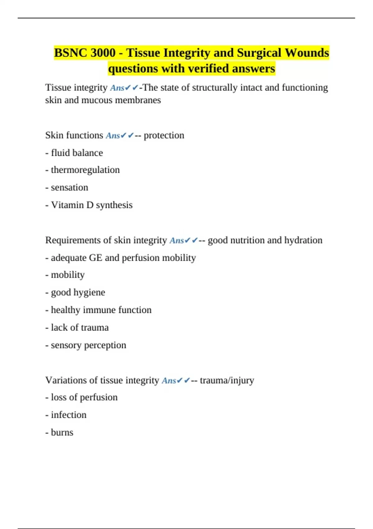 Tissue integrity Ans✔✔-The state of structurally intact and functioning