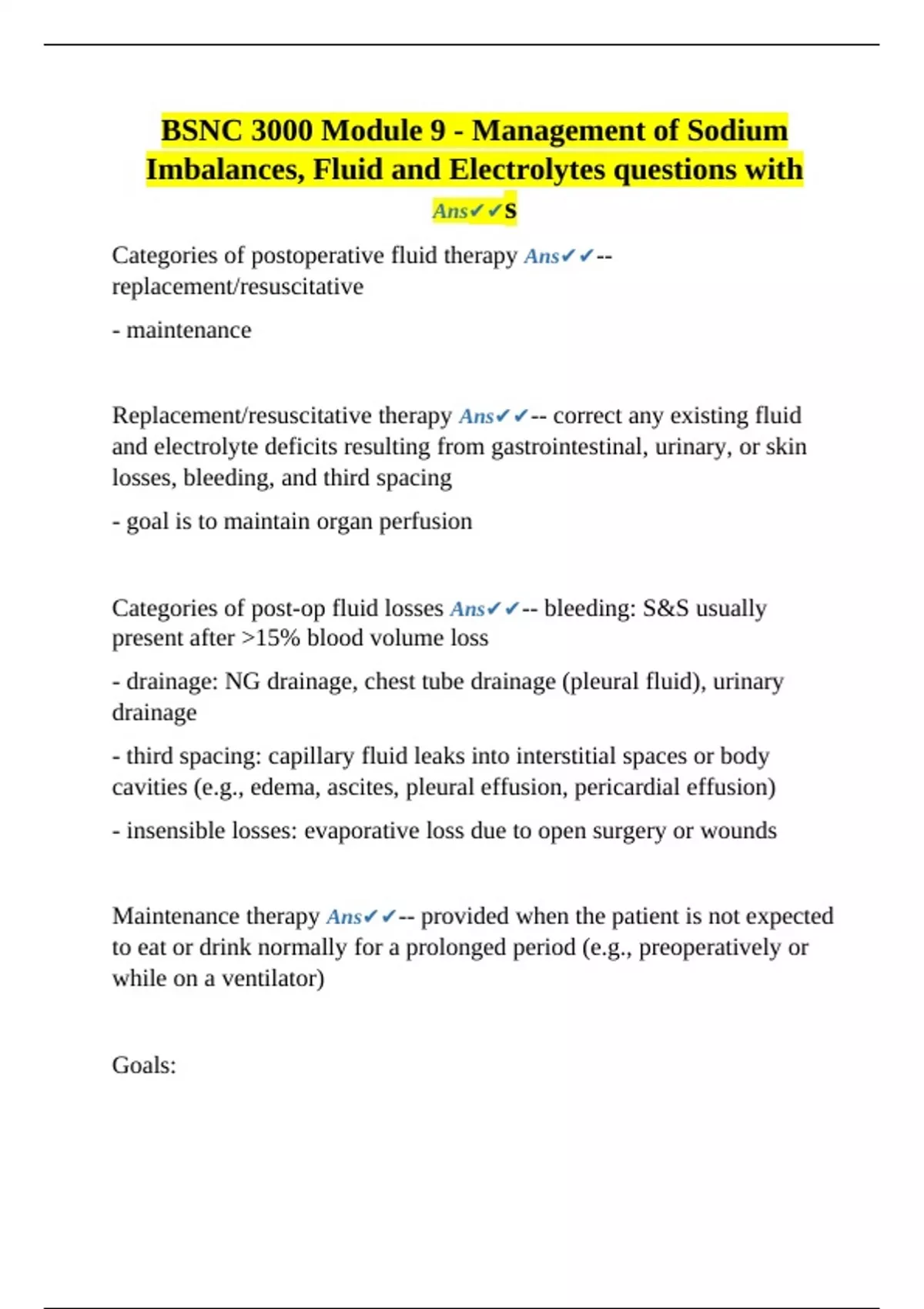 Categories of postoperative fluid therapy Ans✔✔--